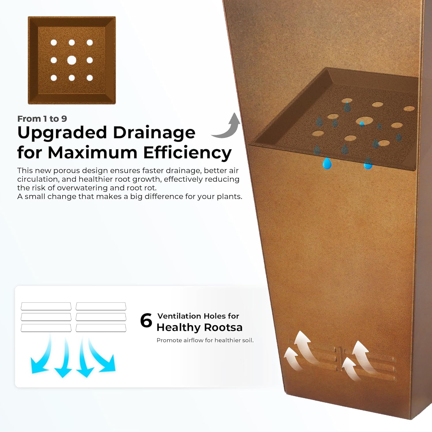 - Removable Insert with Drainage Holes: Includes a convenient removable insert plate with pre-drilled drainage holes to reduce the amount of soil needed to fill the containers and prevent water buildup and promote healthier root systems.