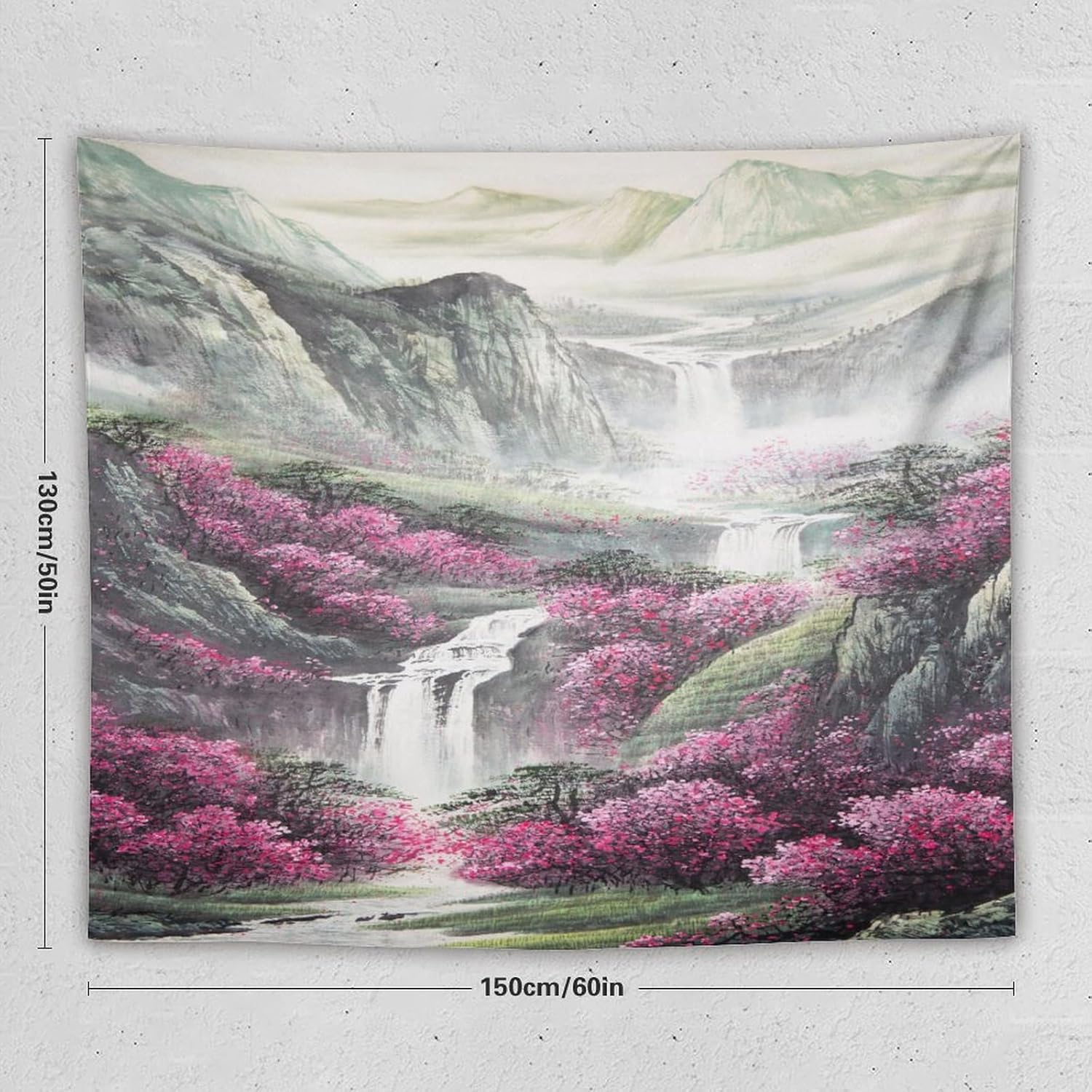 Japanese Tapestry, Red Plum Blossom Mountain Tapestry, Asian Japanese Wall Tapestry, Nature Landscape Tapestries for Bedroom Living Room Decor 60"x50"