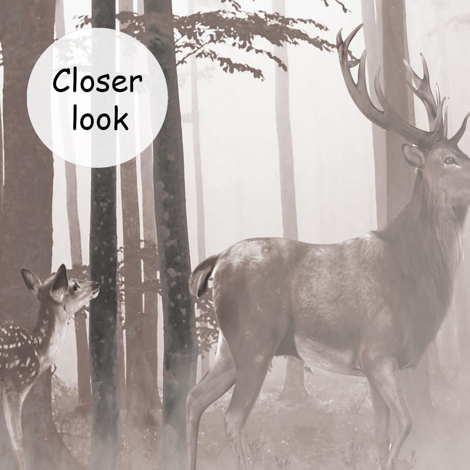 AFZEVEB-Forest Wallpaper Vintage Trees with Deer Wall murals for Bedroom 136"x96" (Not Peel and Stick)