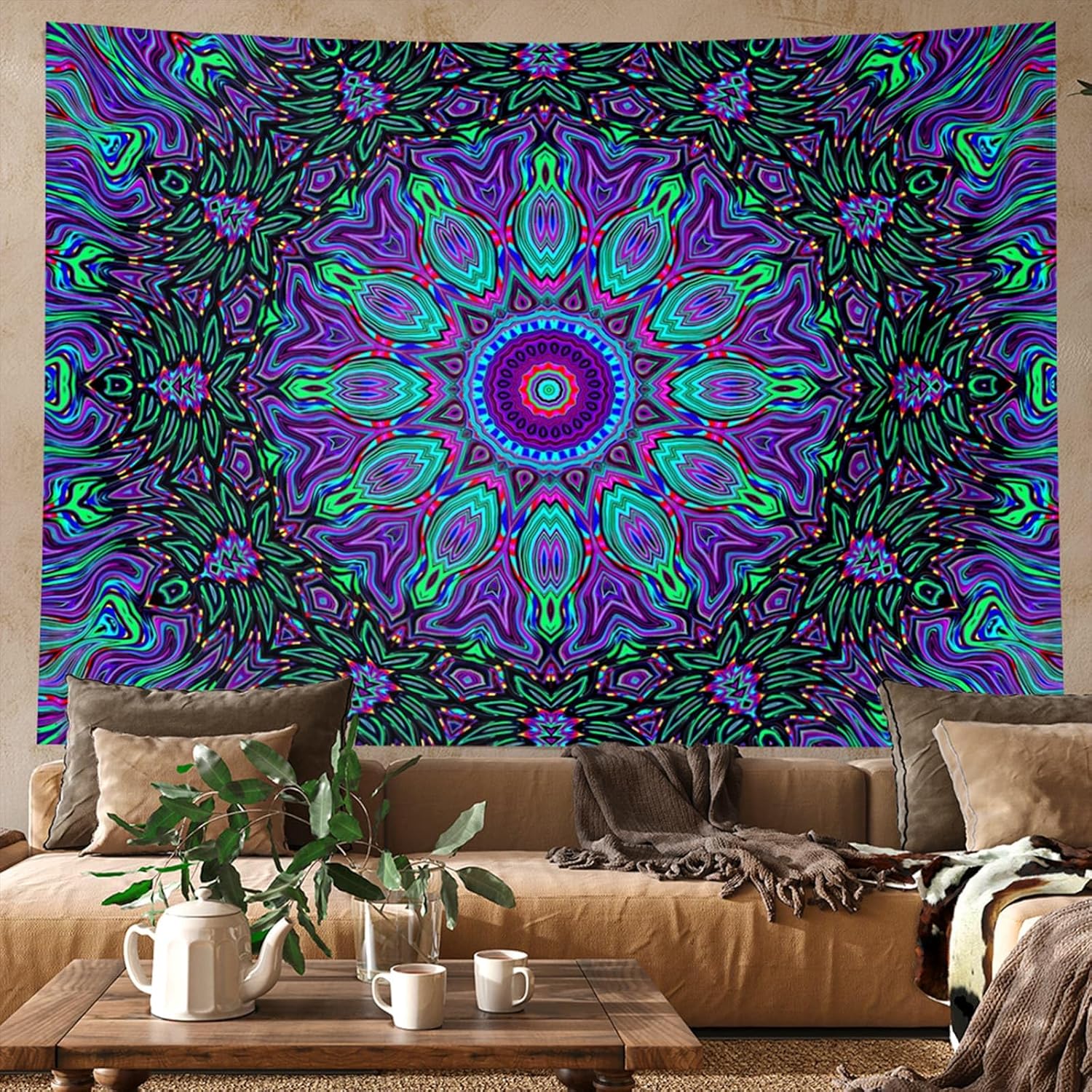 PSYHILAR Blacklight Mandala Tapestry for Bedroom, Psychedelic Black Light Posters for Adults and Teens, Neon UV Reactive Aesthetic Bohemian Art Wall Hanging Decor (90 x 70 Inches)