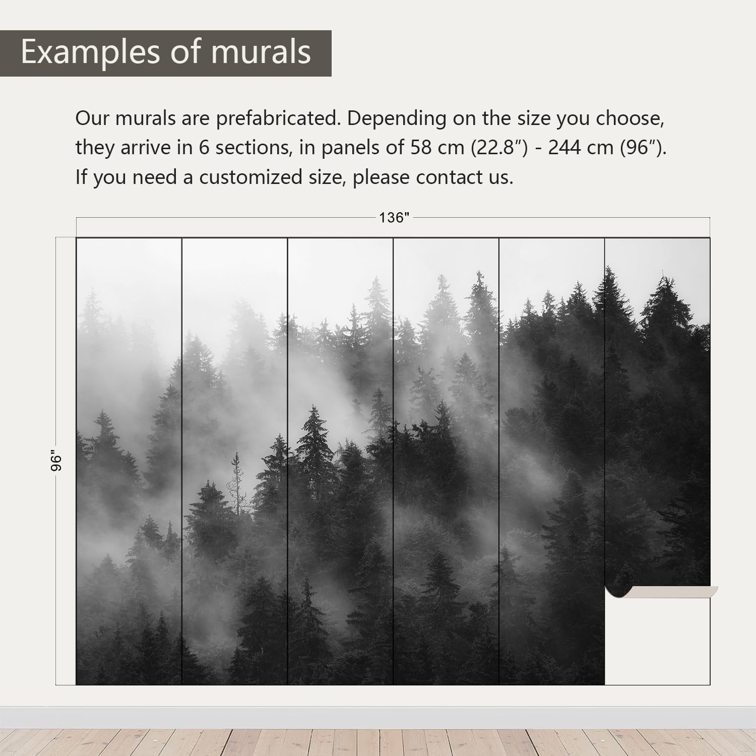 AFZEVEB-Dark Misty Forest Wallpaper Wall murals for Bedroom 136"x96" (Not Peel and Stick)