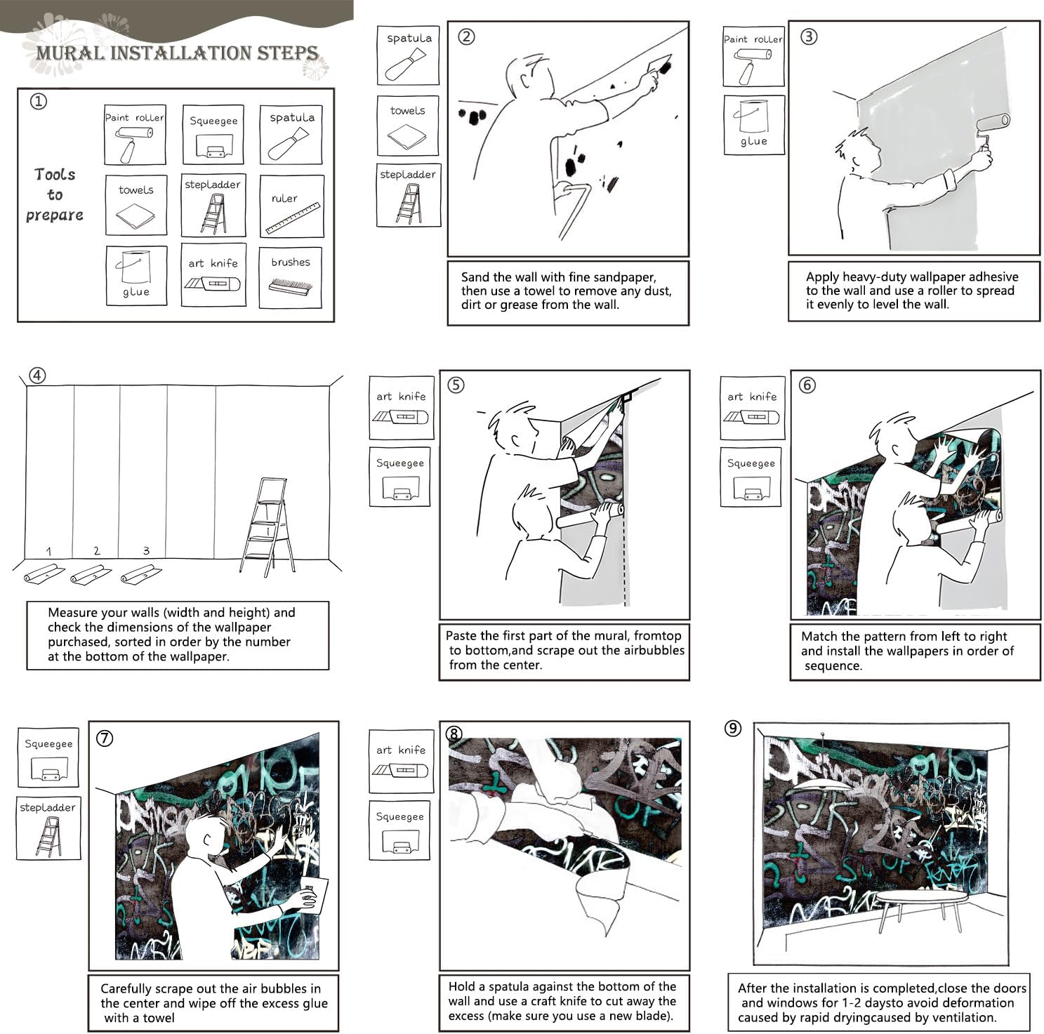 - Tips: Mural can not be peeled and pasted, you need to buy a heavy duty wallpaper glue