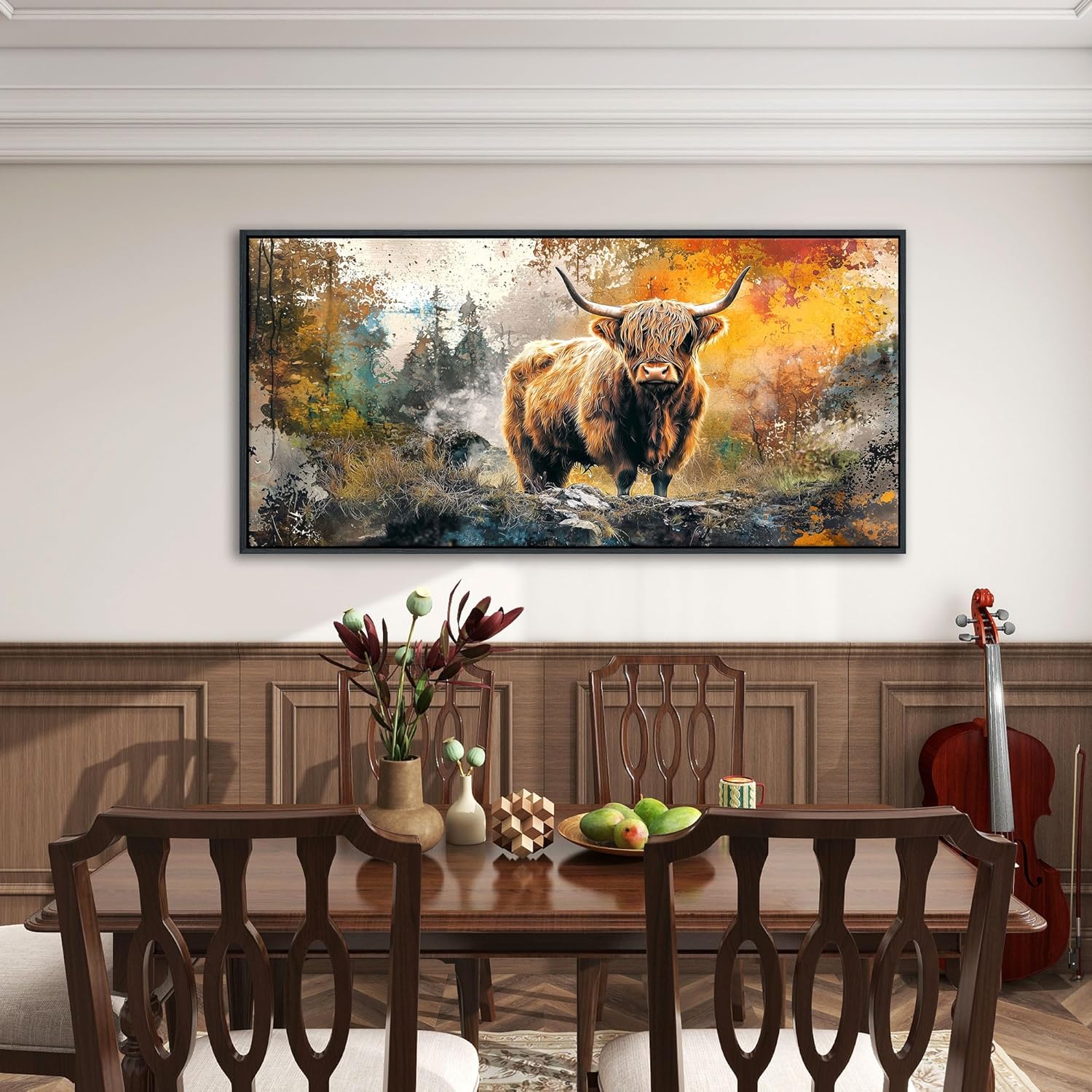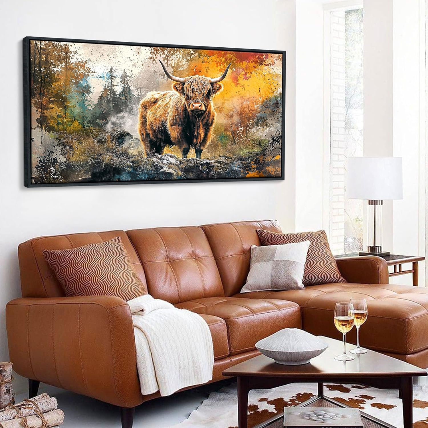 - Striking Visual Impact: This large wall art for living room features a majestic Highland cow amidst autumn foliage. Its lifelike fur and bold hues create a cow pictures wall decor focal point, ideal for wall art bedroom or office wall art, blending wild beauty with farmhouse wall art charm.