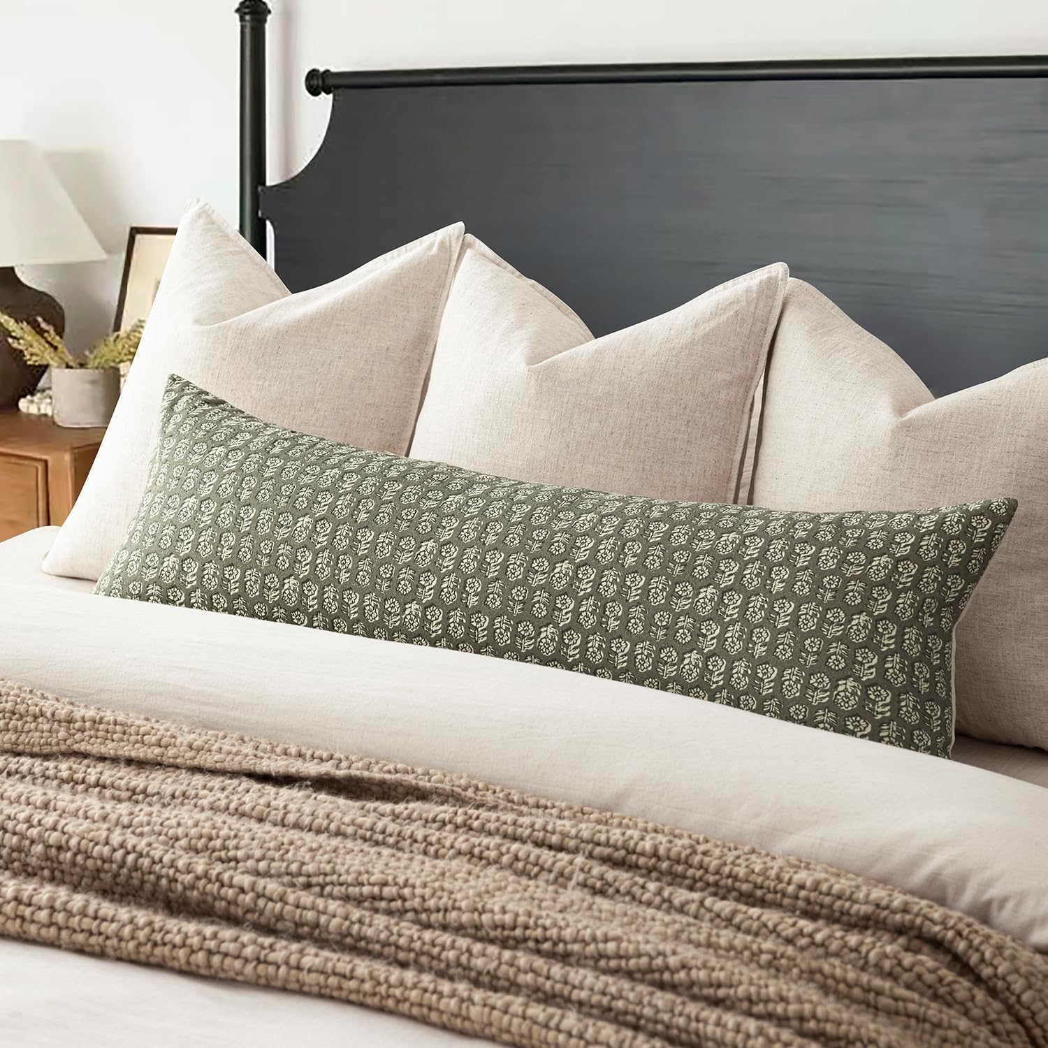 Foindtower Set of 2 Decorative Long Body Lumbar Throw Pillow Covers Neutral Modern Farmhouse Cushion Covers Vintage Home Decor for Sofa Couch Chair Bedroom Living Room Outdoor,14×36 Inch,Sage Green
