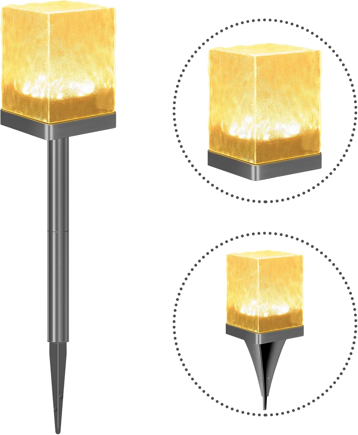 - Auto On/Off & Solar Path Light: The crystal brick solar pathway light is equipped with an upgraded version of solar panels, which extended the lighting time on the basis of the original one. LED Path lights can automatically turn on at dusk and turn off at dawn, it is highly integrated with outdoor environments such as gardens, driveways, walkways, lawns or patios, creating a charming atmosphere