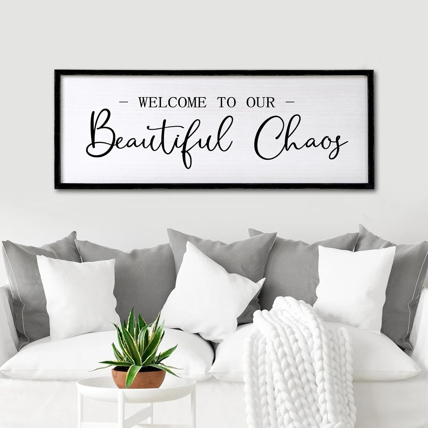 Welcome To Our Beautiful Chaos Sign Wall Decor Framed Wood 32X12 Inch For Rustic Home Living Room Entryway Bedroom Hanging Art (Wood)