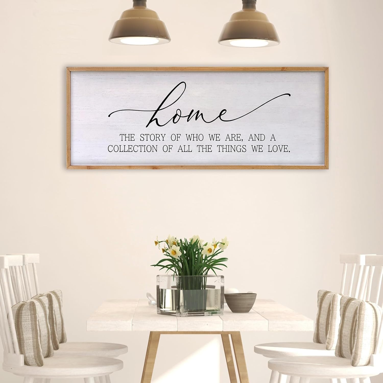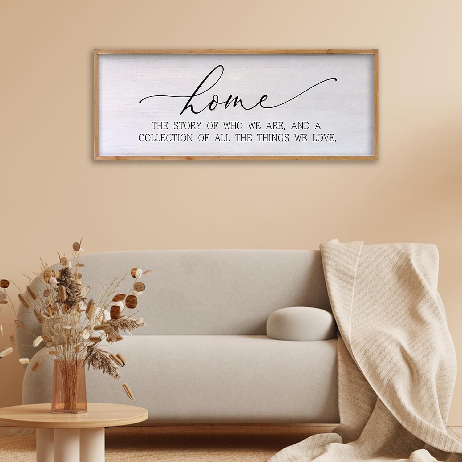 Home The Story of Who We Are Sign Farmhouse Family Wall Decor 32x12 Inch Plaque Wood Framed Art for Hanging (Wood)
