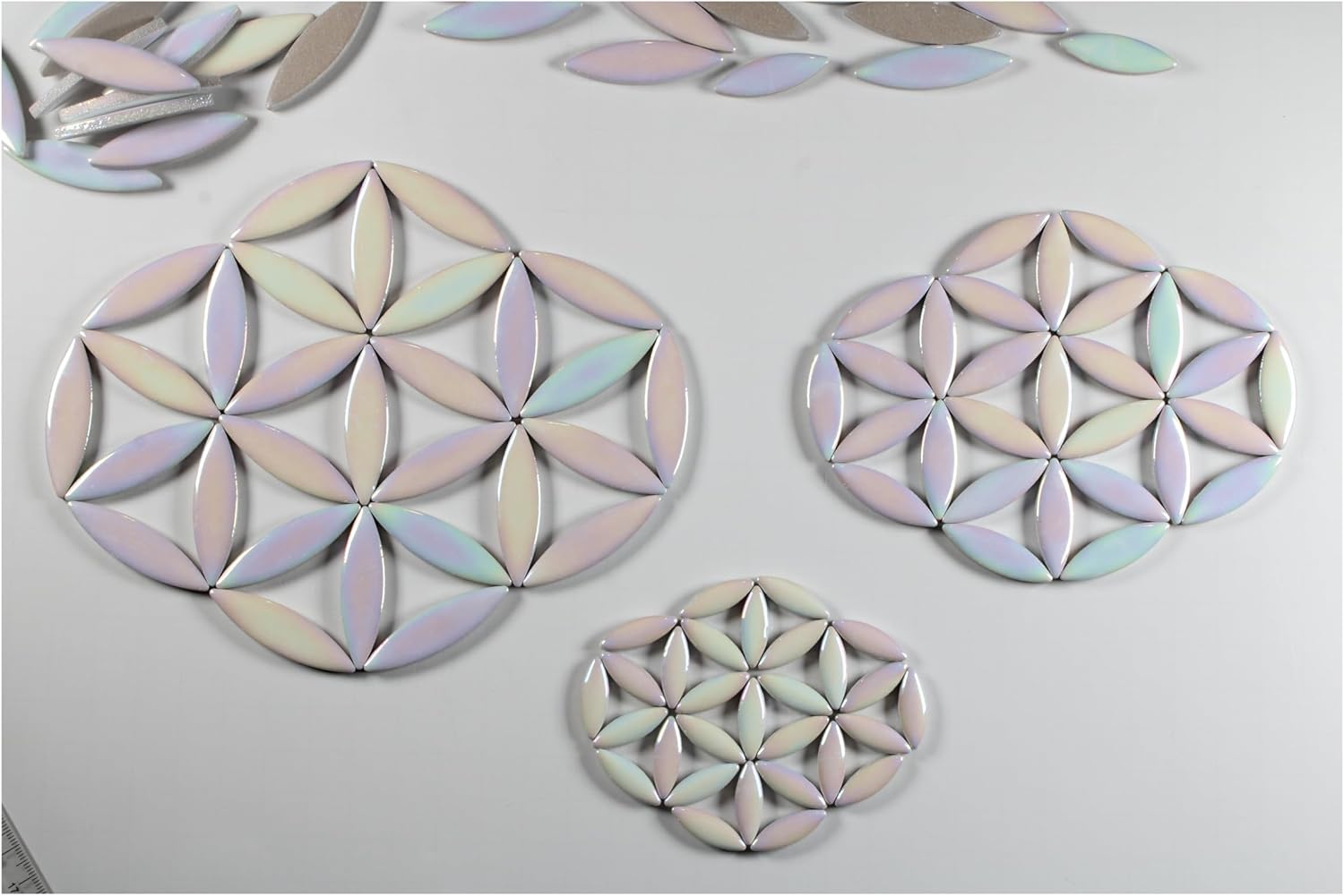 - Vibrant Colors; 28 Solid (3 Iridescent & Metallic Gold & Silver)11 Mixes; Biggest Selection of Ceramic Tiles for Crafts; Unique Petal Shape Ideal for Creating Floral Patterns, Sacred Geometry, Mosaic Decor & Custom Mosaic Art