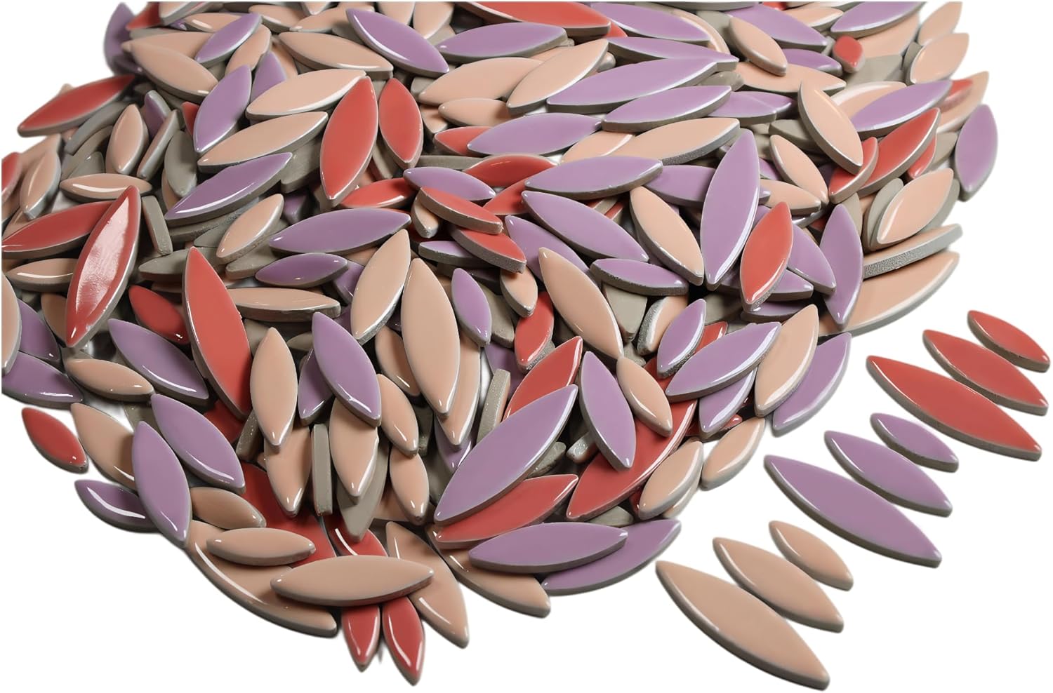 - Vibrant Colors; 28 Solid (3 Iridescent & Metallic Gold & Silver)11 Mixes; Biggest Selection of Ceramic Tiles for Crafts; Unique Petal Shape Ideal for Creating Floral Patterns, Sacred Geometry, Mosaic Decor & Custom Mosaic Art