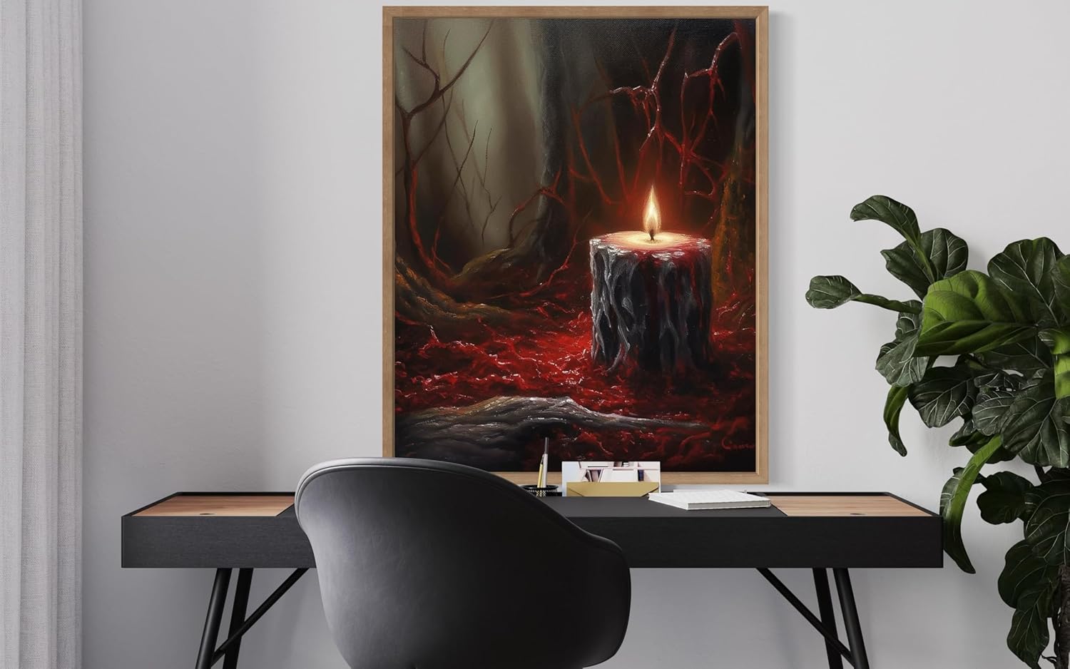 Gothic Candle Poster Art Print, Halloween Scary Vintage Wall Art Academia Spooky Painting Decoration for Horror Prints, Posters Bedroom Decor 89 (Gothic Candle, 16 x 20 inches, Wood Frame)