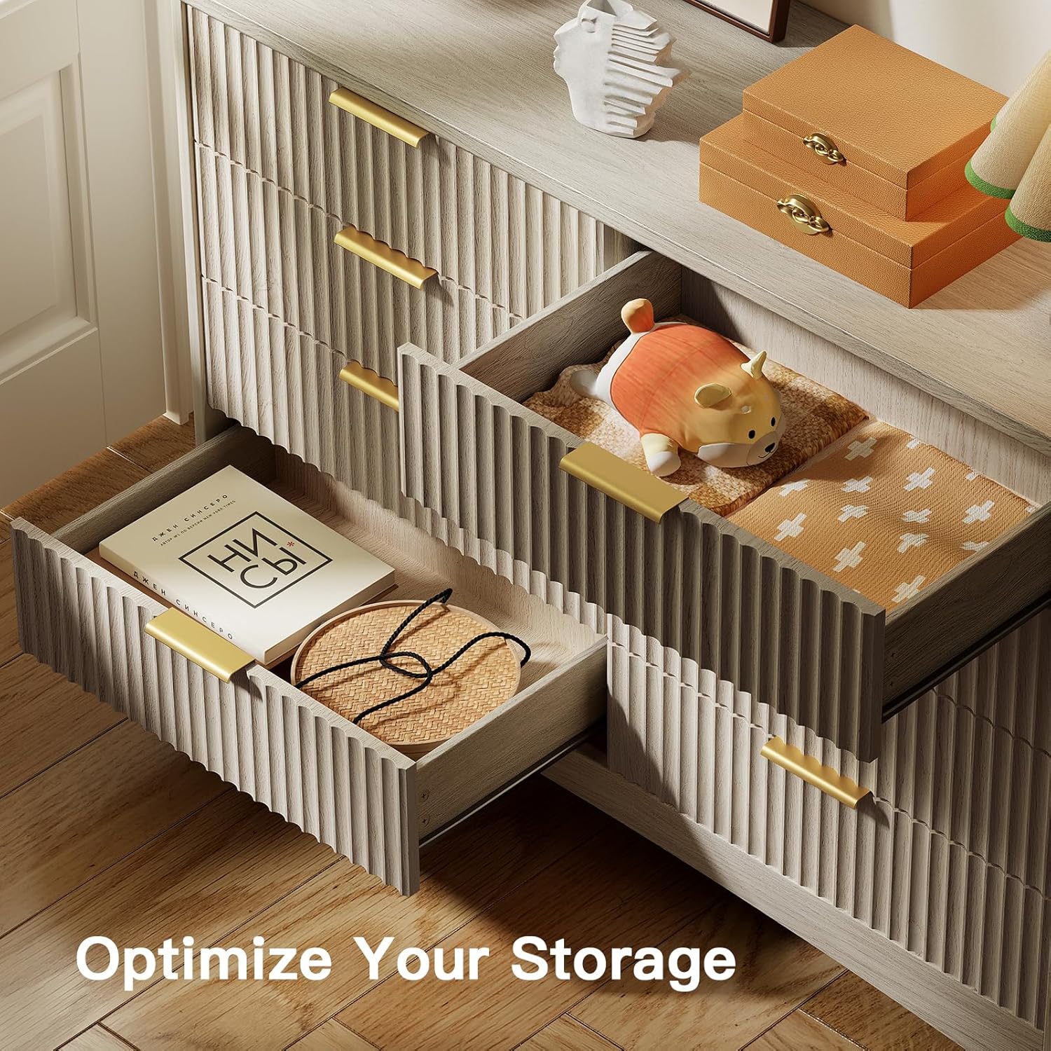 - ăLarge Storage CapacityăThe fluted dresser is equipped with 8 spacious drawers, capable of accommodating over 80 garments, 30 toys, 60 tissues, 80 skirts, 70 hats, and 130 pairs of socks. This generous storage space allows for the organized arrangement of clothing, bedding, cosmetics, or jewelry, thereby assisting you in maintaining a clean and orderly environment.