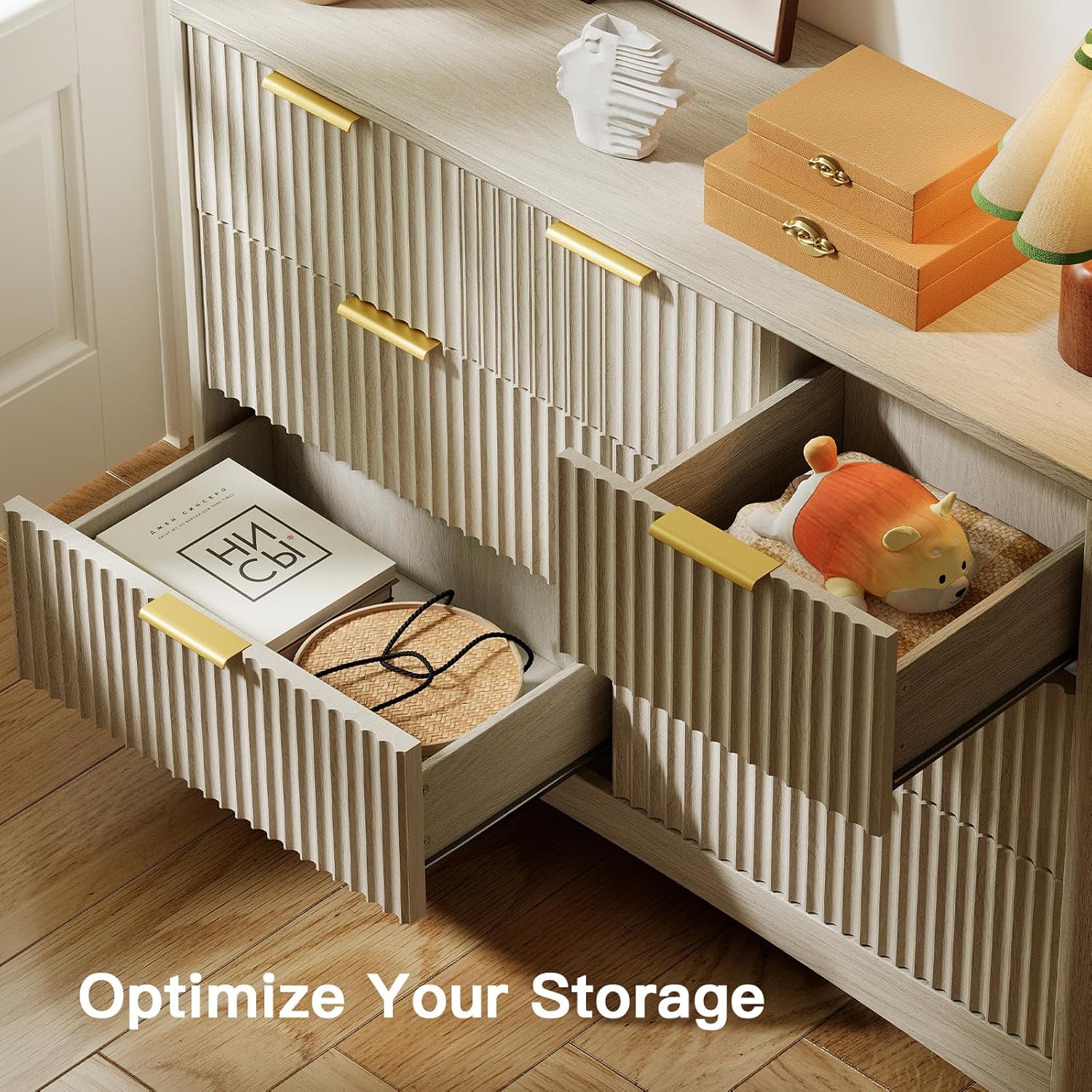 - ăLarge Storage CapacityăThe fluted dresser is equipped with 7 spacious drawers, capable of accommodating over 80 garments, 30 toys, 60 tissues, 80 skirts, 70 hats, and 130 pairs of socks. This generous storage space allows for the organized arrangement of clothing, bedding, cosmetics, or jewelry, thereby assisting you in maintaining a clean and orderly environment.