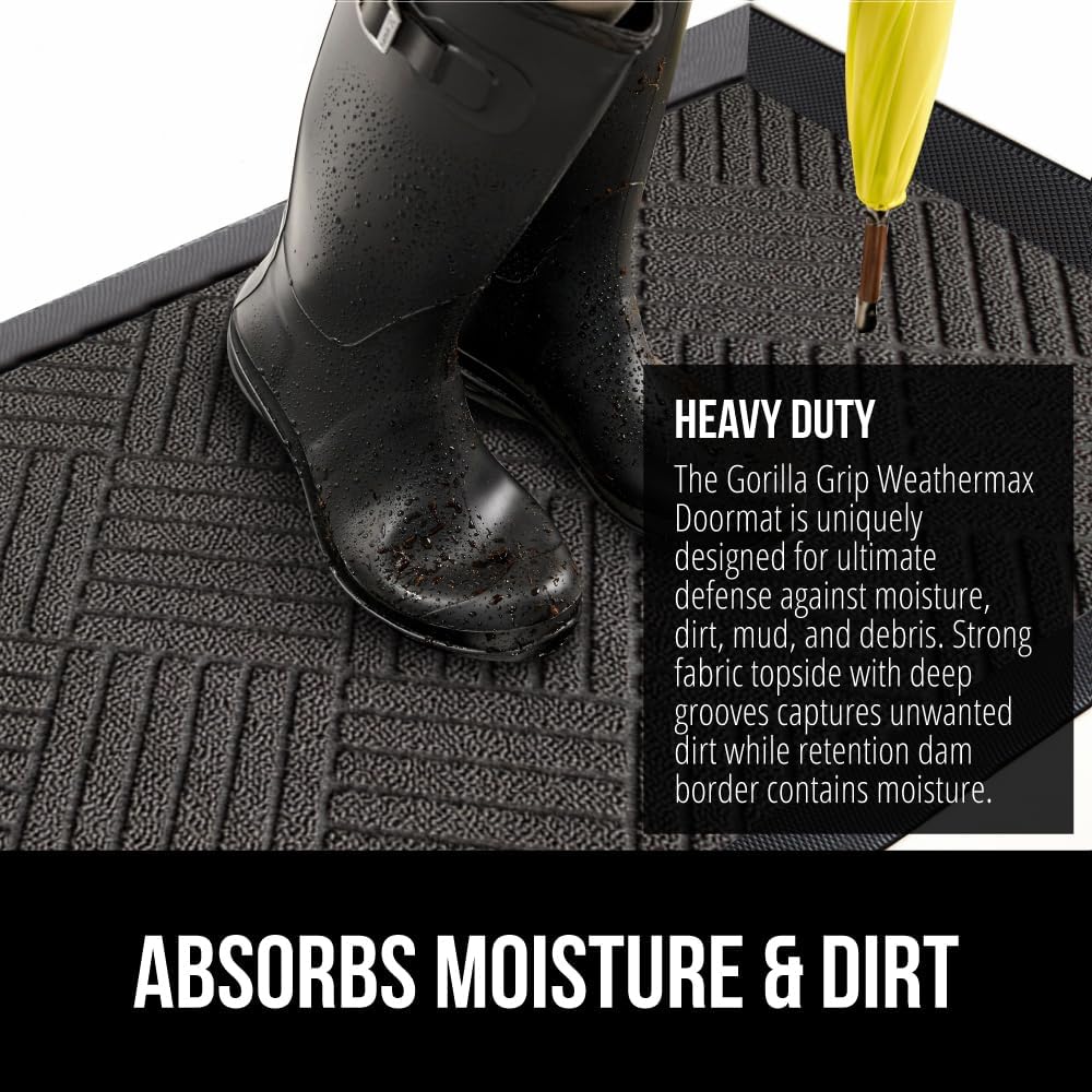- THE ORIGINAL WEATHERMAX ALL SEASON DOORMAT: Gorilla Grip's Original WeatherMax doormat is built tough with a heavy duty, yet soft and flexible construction; deep grooves, beveled rubber border and retention dam help capture dirt, debris and moisture