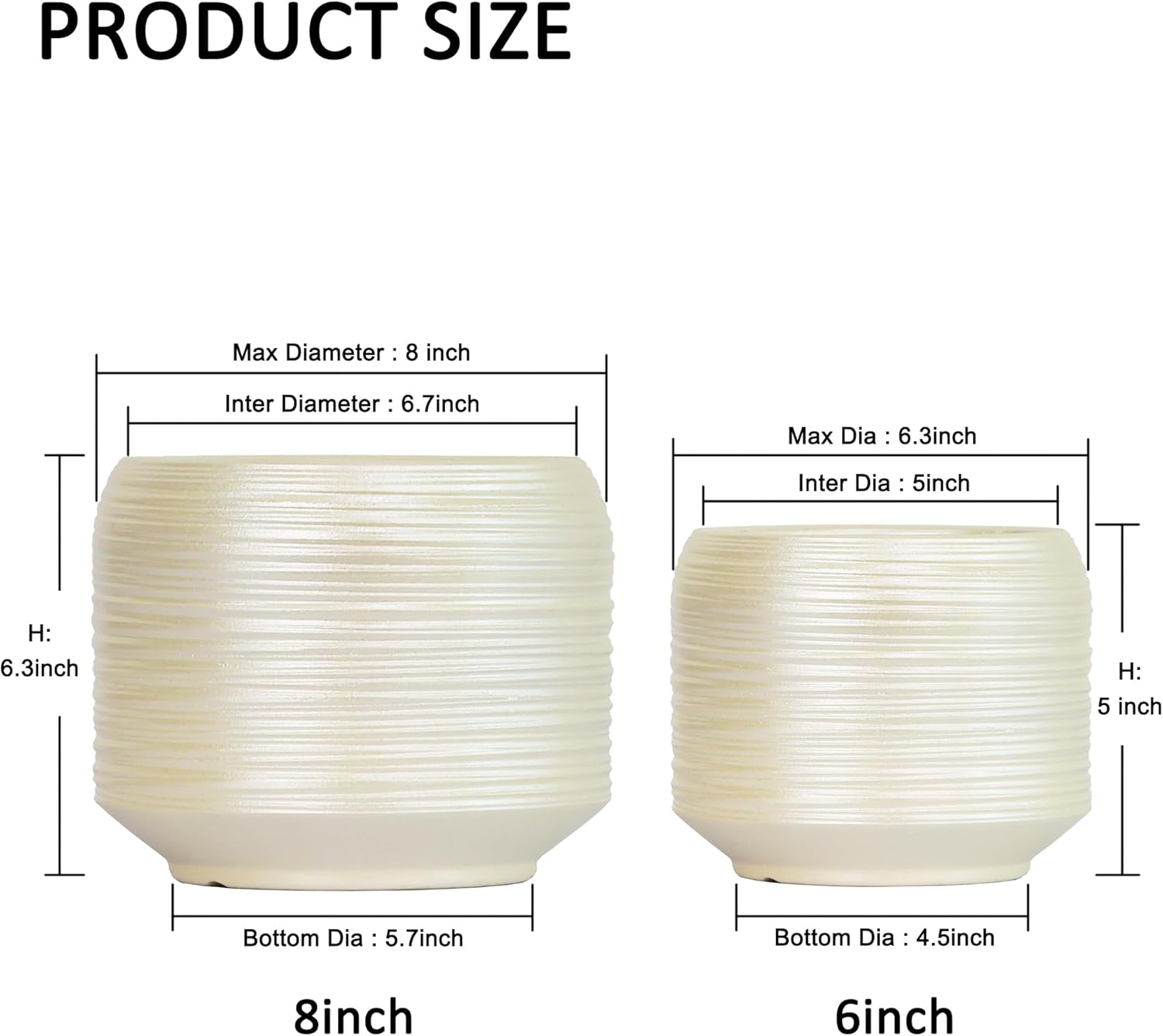 - 【Modern Decorative Planters】:Designed with a raised line-textured finish and modern silhouette, these indoor ceramic plant pots add visual interest to any space—whether styled as 6 inch decorative plant pots or 8 inch flower pots on countertops and shelves.