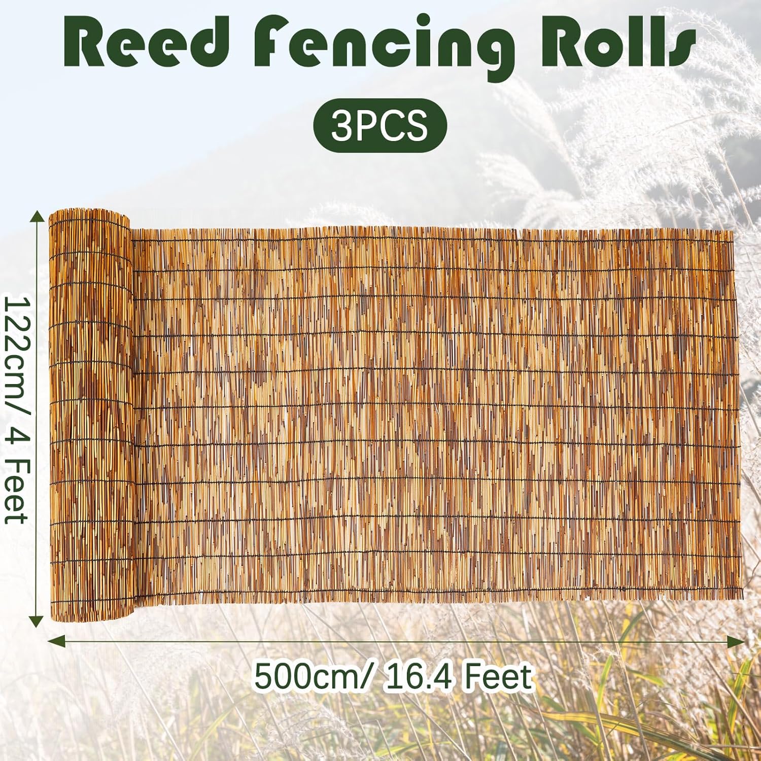 - Packing List: this package includes 3 reed fences of size about 3 x 16.4 ft/ 0.9 x 5 m; The surface of the reed fence may have slight burs, hence, it's important to wear gloves during installation; The spots on the bamboo sieve are normal and add to the authentic look; Ensure to store the natural reed fence in a dry, ventilated place when not in use, to maintain its longevity
