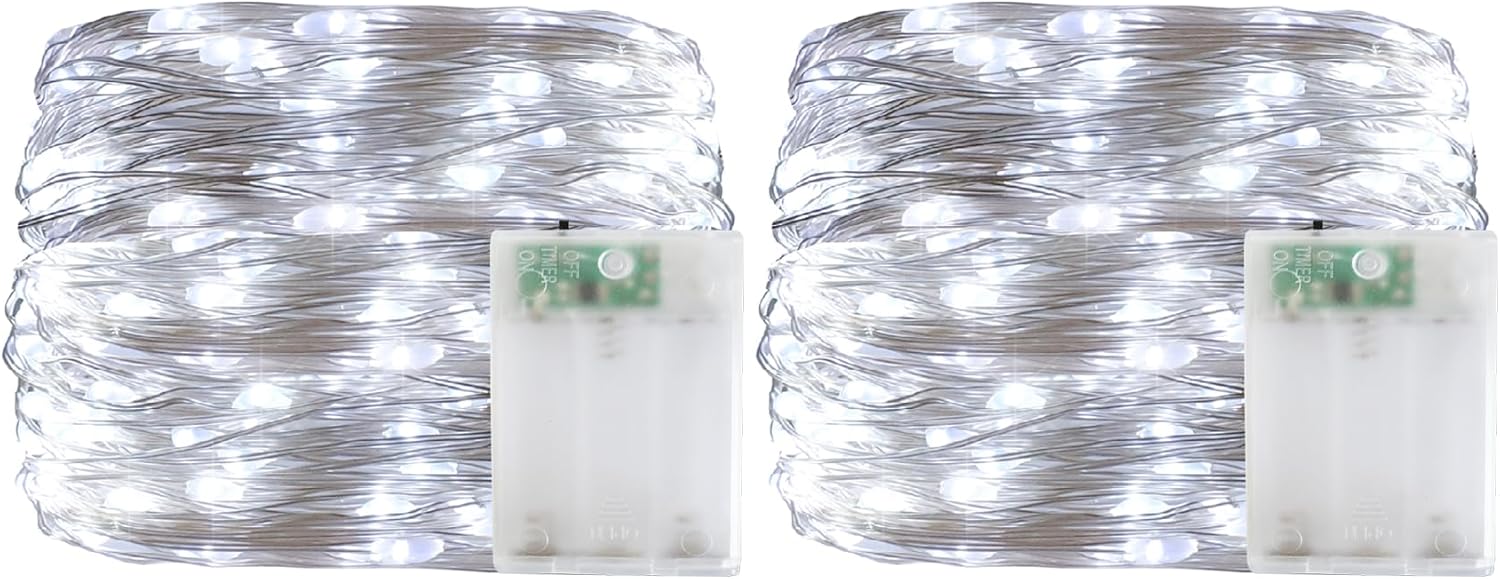 Christmas Decorations Cool White Fairy String Lights, Battery Operated with Timer, 2 Pack Total 33FT 100 Led Mini Battery Powered Twinkle Mason Jar Waterproof Firefly Lights DIY Party