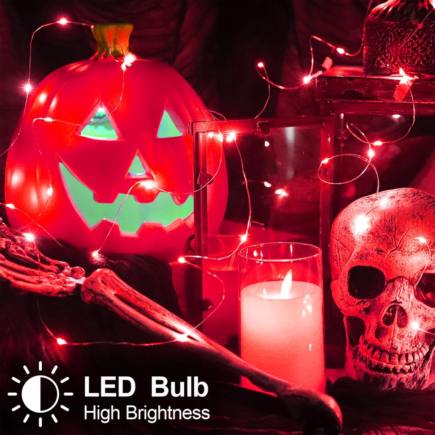 Christmas Decorations Red Fairy String Lights, Battery Operated with Timer, 2 Pack Total 33FT 100 Led Mini Battery Powered Twinkle Mason Jar Waterproof Firefly Lights DIY Party