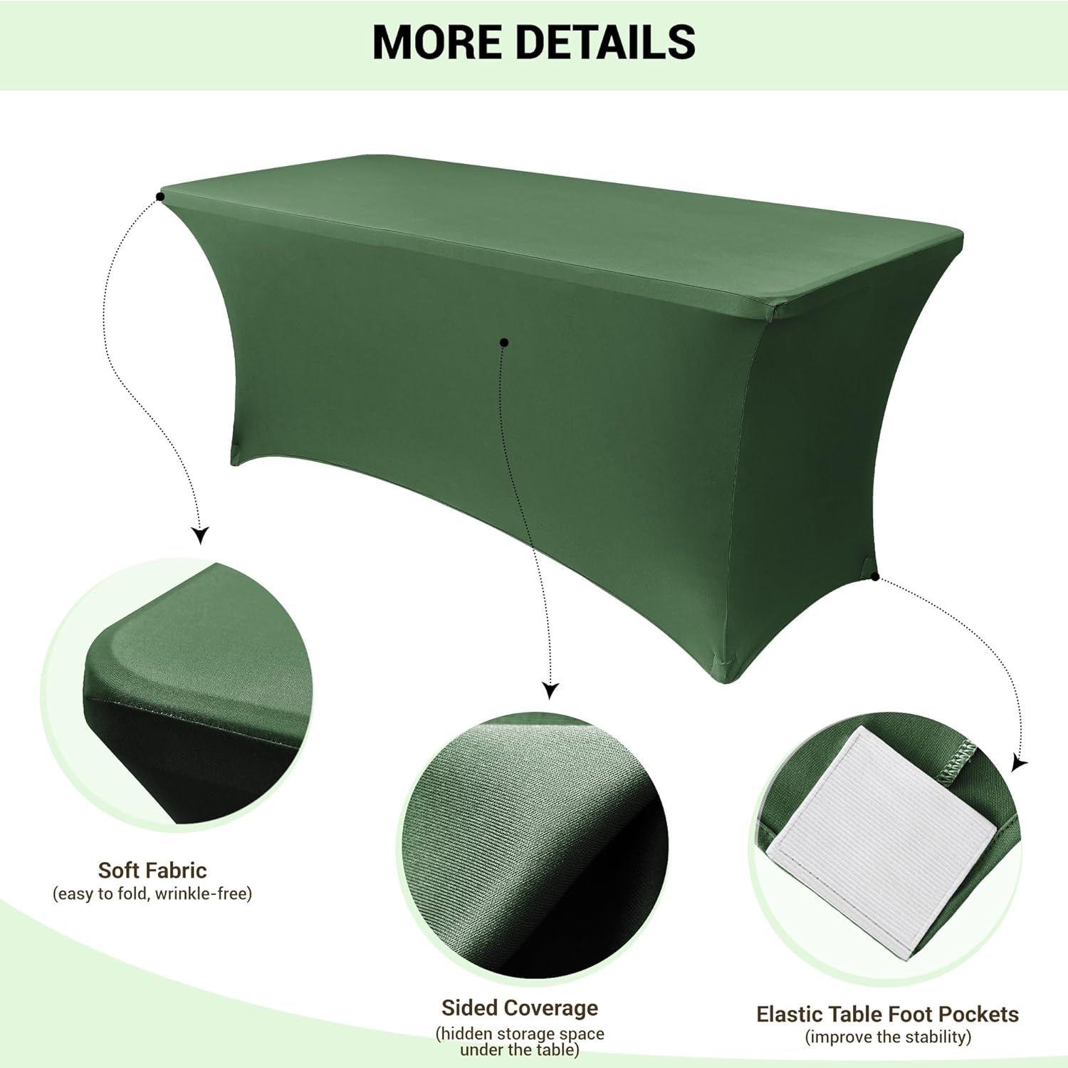 Obstal 6ft Stretch Spandex Table Cover - 4 Pack Universal Rectangular Fitted Tablecloth Protector for Wedding, Banquet and Party (Blackish Green, 72L x 30W x 30H Inches)