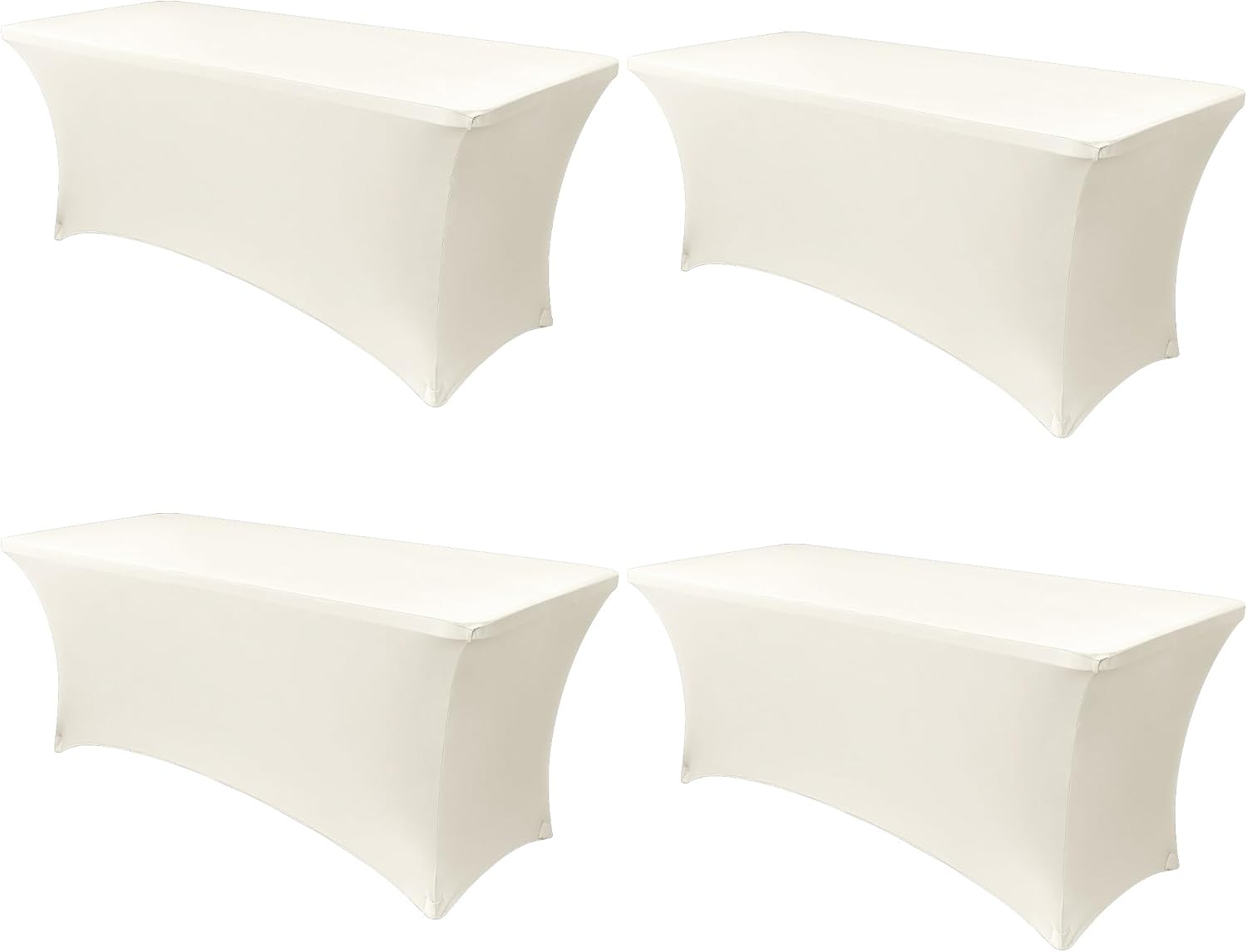 Obstal 6ft Stretch Spandex Table Cover - 4 Pack Universal Rectangular Fitted Tablecloth Protector for Wedding, Banquet and Party (Cream, 72L x 30W x 30H Inches)