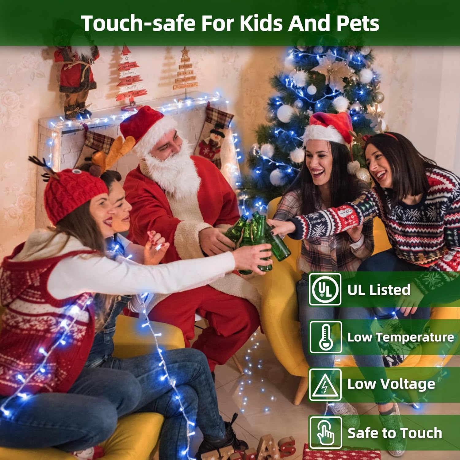 - Built for Families & Energy Savings: Many parents worry about kids or pets touching led string lights. That’s why our UL-certified low-voltage LEDs stay cool, even after hours of use. Safe for indoor trees, mantels, or kids’ bedrooms. Plus, the lights use 90% less energy than traditional bulbs—keeping your electric bill low while still giving you the brightest display in the neighborhood