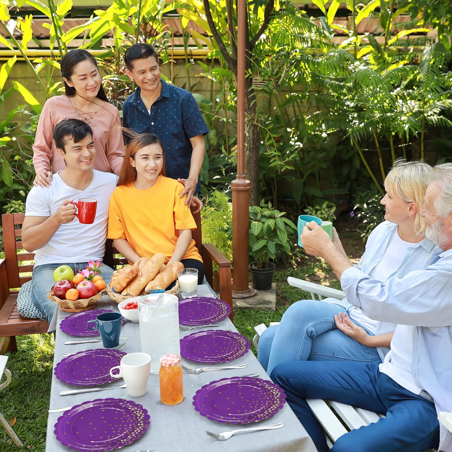 - 【FOR EVERY EVENT】: Elegant purple plates for party is great for everyday and party use, like cocktail evenings, BBQ parties, family gatherings, bar decorations, picnics, elegant bridal showers, afternoon tea parties, birthdays, holiday celebrations, Christmas, New Years, Graduation Parties, and other occasions and events.