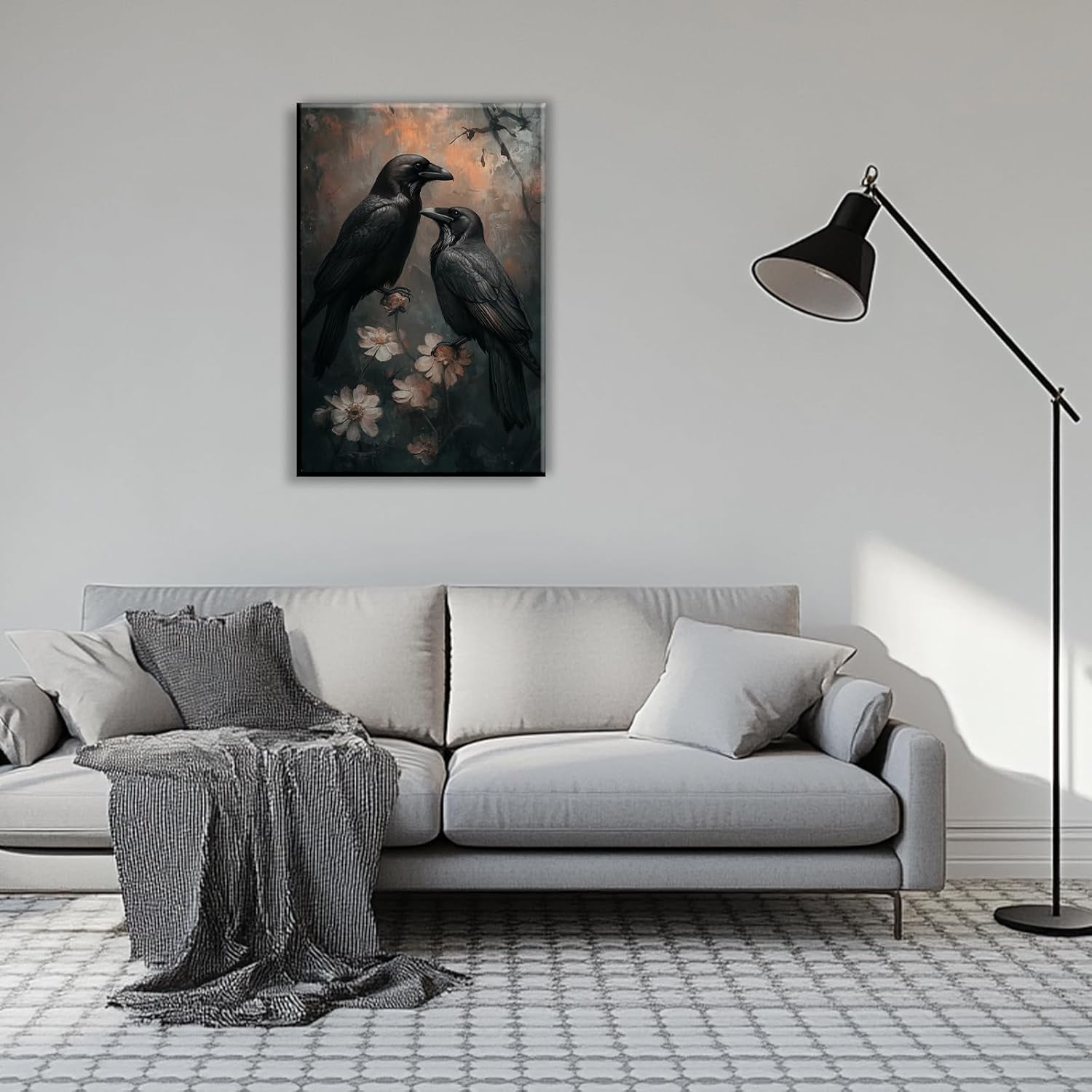 OAAPITI Birds Canvas Wall Art Black Couple Crow Picture Print Vintage Gothic Raven Artwork for Living Room Halloween Home Wall Decor(Artwork-7,24"x36")