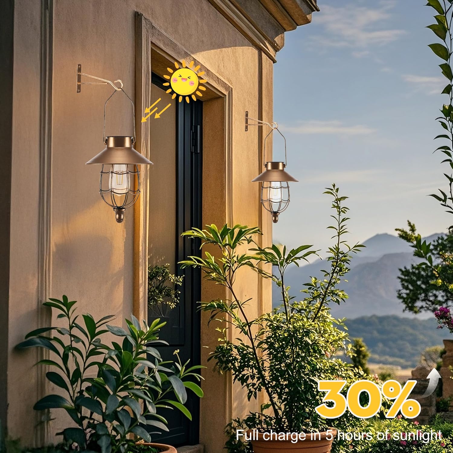 pearlstar 2 Pack Solar Lantern Outdoor Hanging Light Waterproof Metal Solar Lamp for Yard Garden Pathway Patio Porch Decor(Copper)