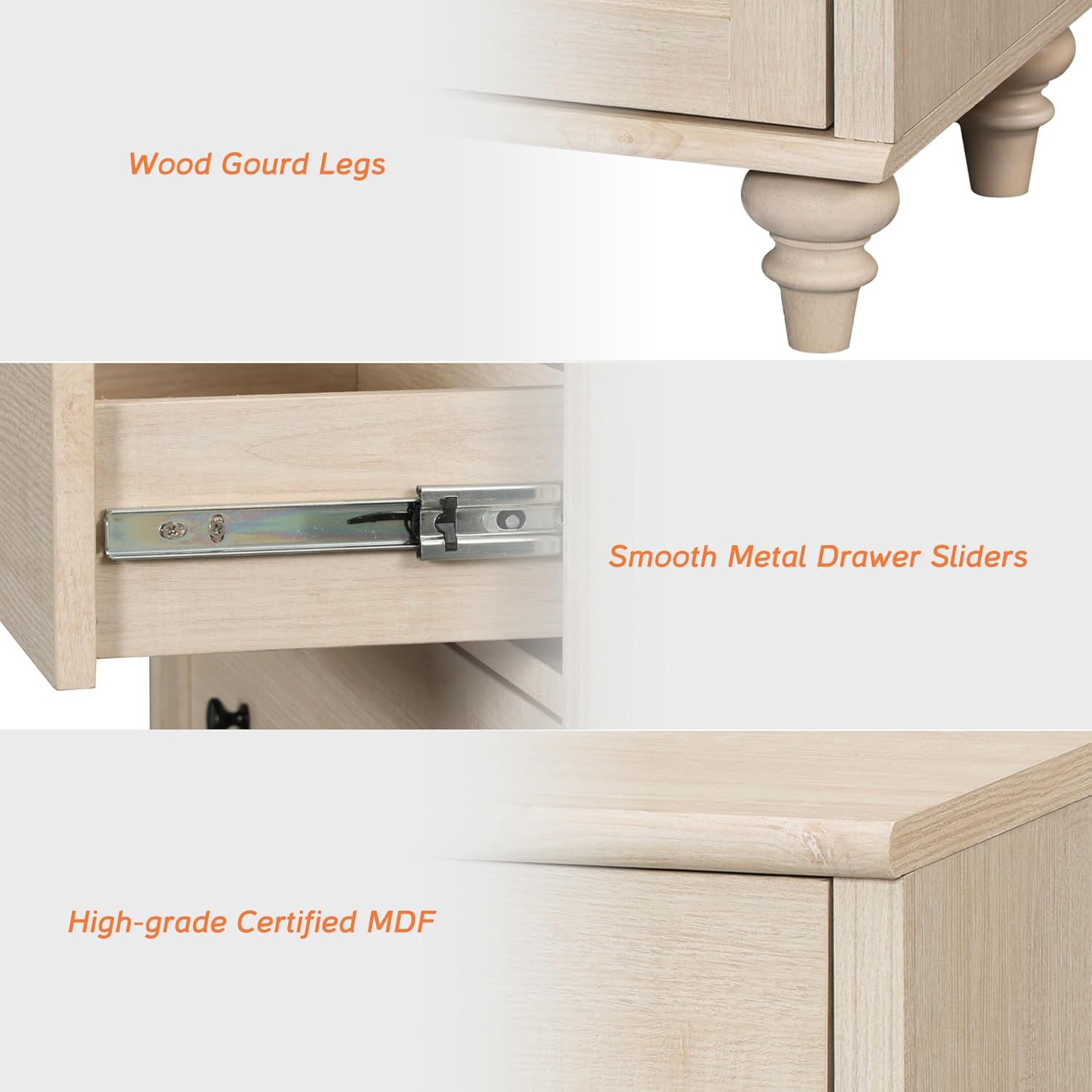 - 【Reliability&Humanized Design】The dresser for bedroom with solid wood round gourd furniture legs add beauty and ensure the stability of the storage cabinet.And an additional anti-tipping kit is also included for added safety.Total Weight Capacity: 88 lbs.The distance between the bottom plate and the floor is large enough so that the robot vacuum cleaner can pass freely.