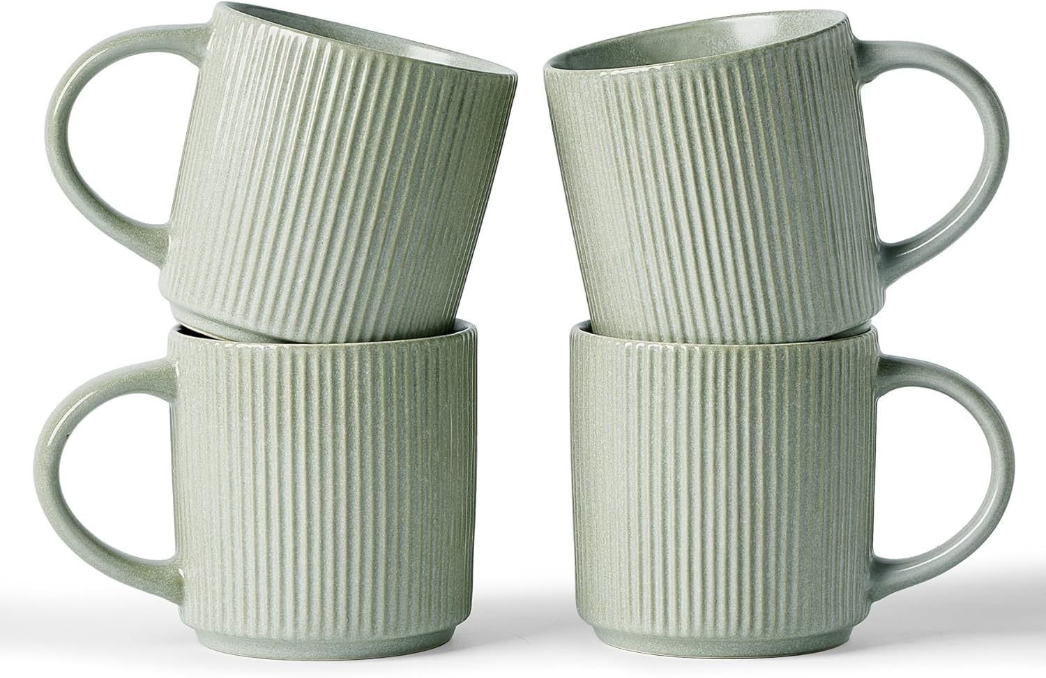 famiware Coffee Mug Set for 4, Star 12 oz Catering Mugs Cup Set with Handle for Coffee, Tea, Cocoa, Milk - Ceramic Stoneware Drinkware Set, Matte Green