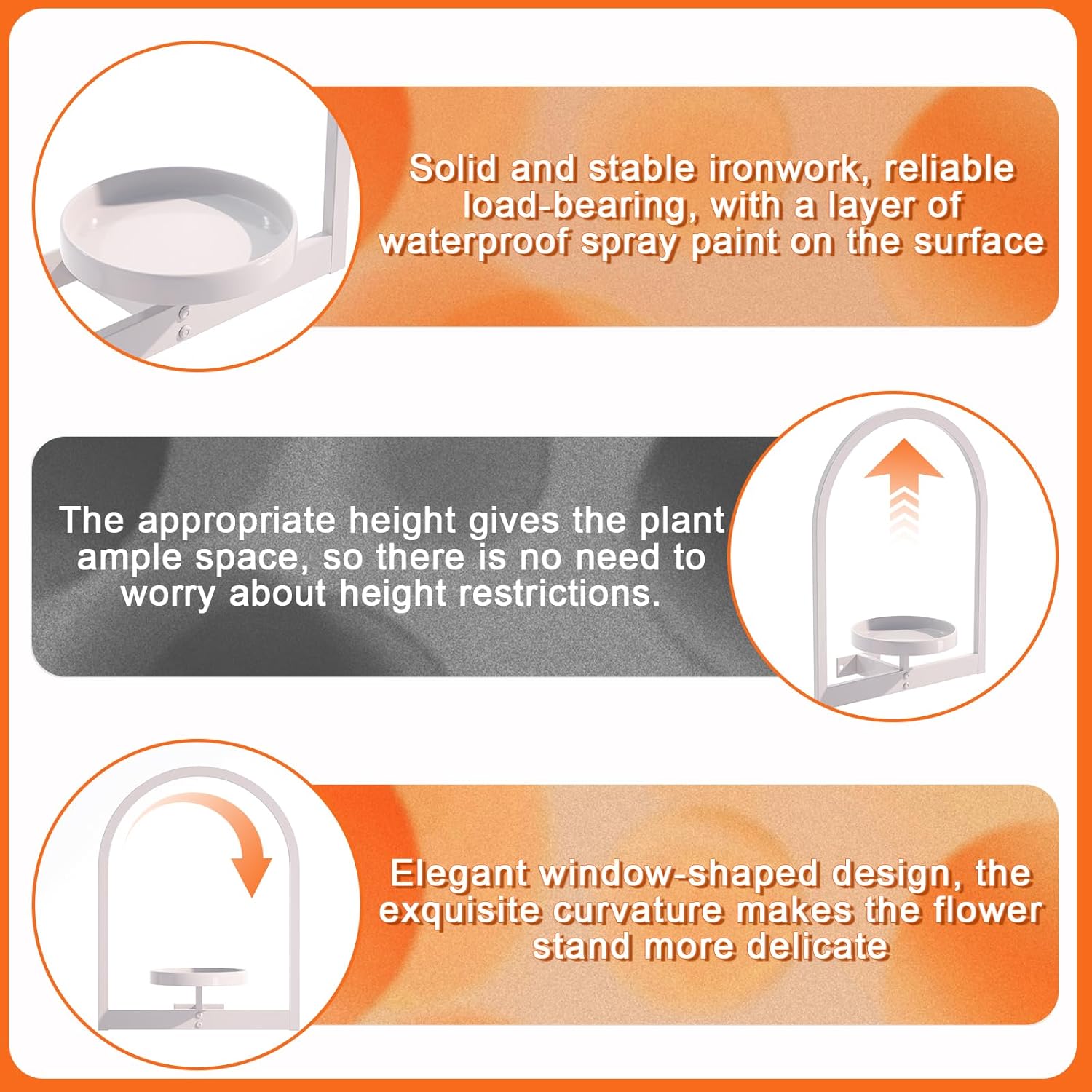 - Arc Frame Design: Exquisite and elegant appearance design makes this wall mounted plant stand suitable for all scenes, such as bedroom, living room, office, restaurant, balcony and other occasions. People will be amazed by your aesthetics.