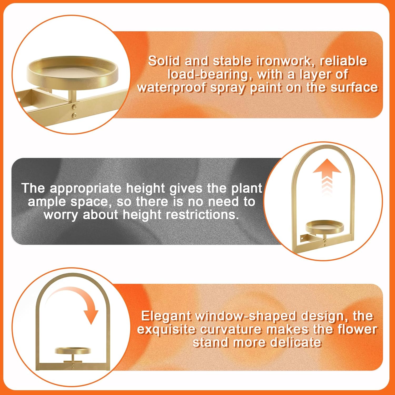 - Arc Frame Design: Exquisite and elegant appearance design makes this wall mounted plant stand suitable for all scenes, such as bedroom, living room, office, restaurant, balcony and other occasions. People will be amazed by your aesthetics.