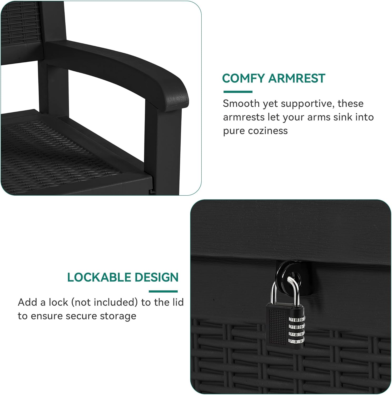 - Secure Storage: Lock up your items with this outdoor bench storage (padlock sold separately); Whether it's pool deck storage essentials or patio storage bench treasures, your items will be reliably kept while you're out and about