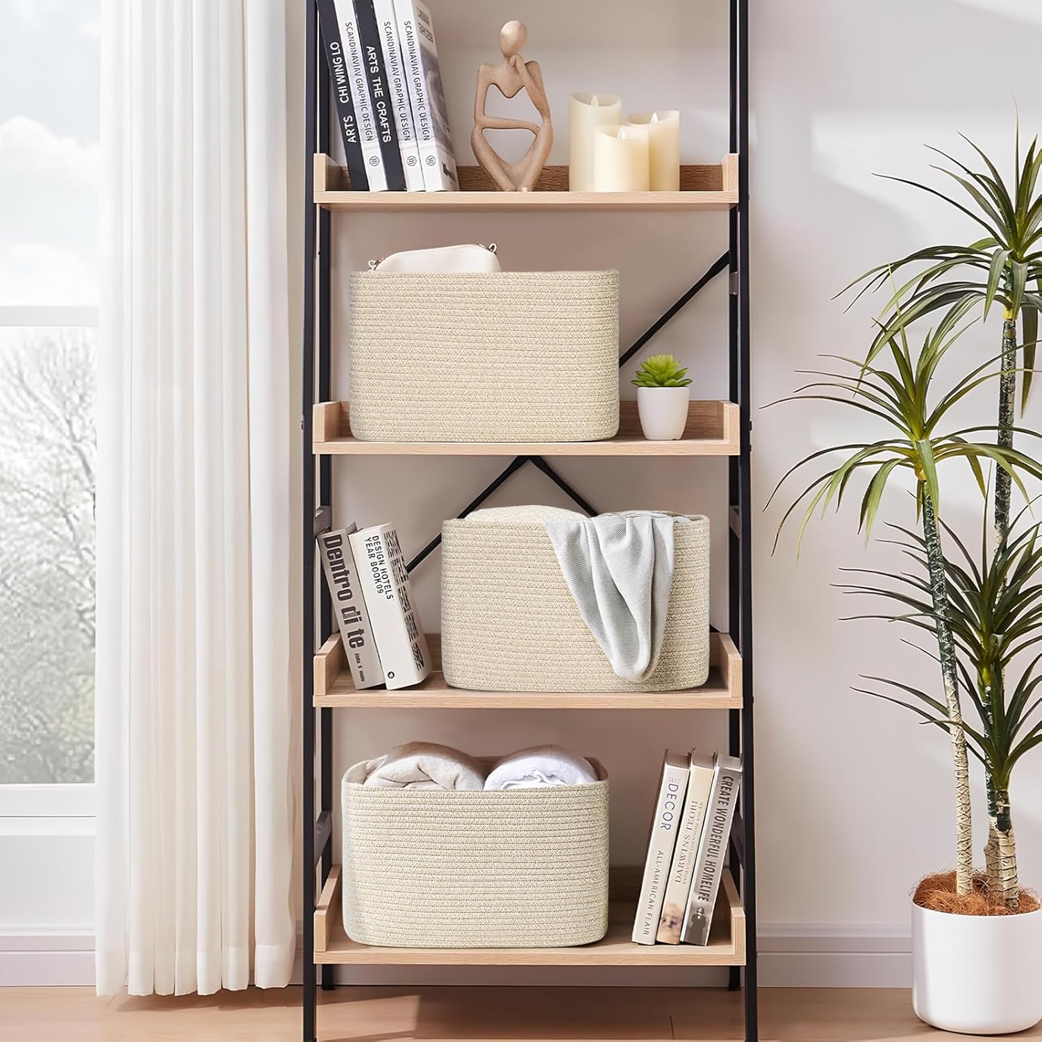 - 🎀【Cotton & Durable Shelf Baskets】: 3-Pack Storage Baskets are made of cotton rope weaving Stronger and more durable than plastic baskets and rattan baskets, will not damage the contact surfaces, in order to meet your storage needs based on the decorative role can also be played.