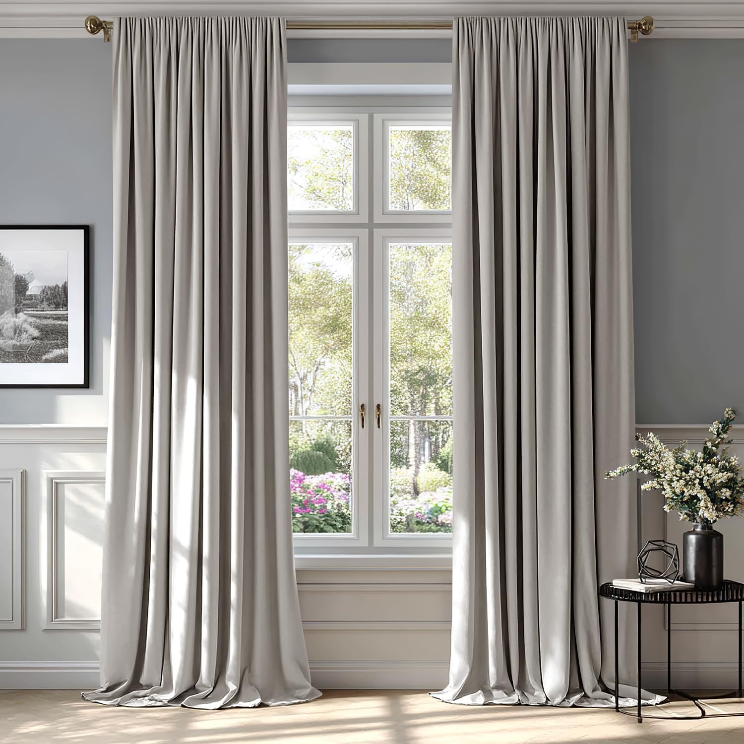 MIULEE Silver Velvet Curtains Thermal Insulated Blackout Curtain Drapes for Bedroom Living Room Darkening 108 Inches Long Curtains Panels Rod Pocket Set of 2