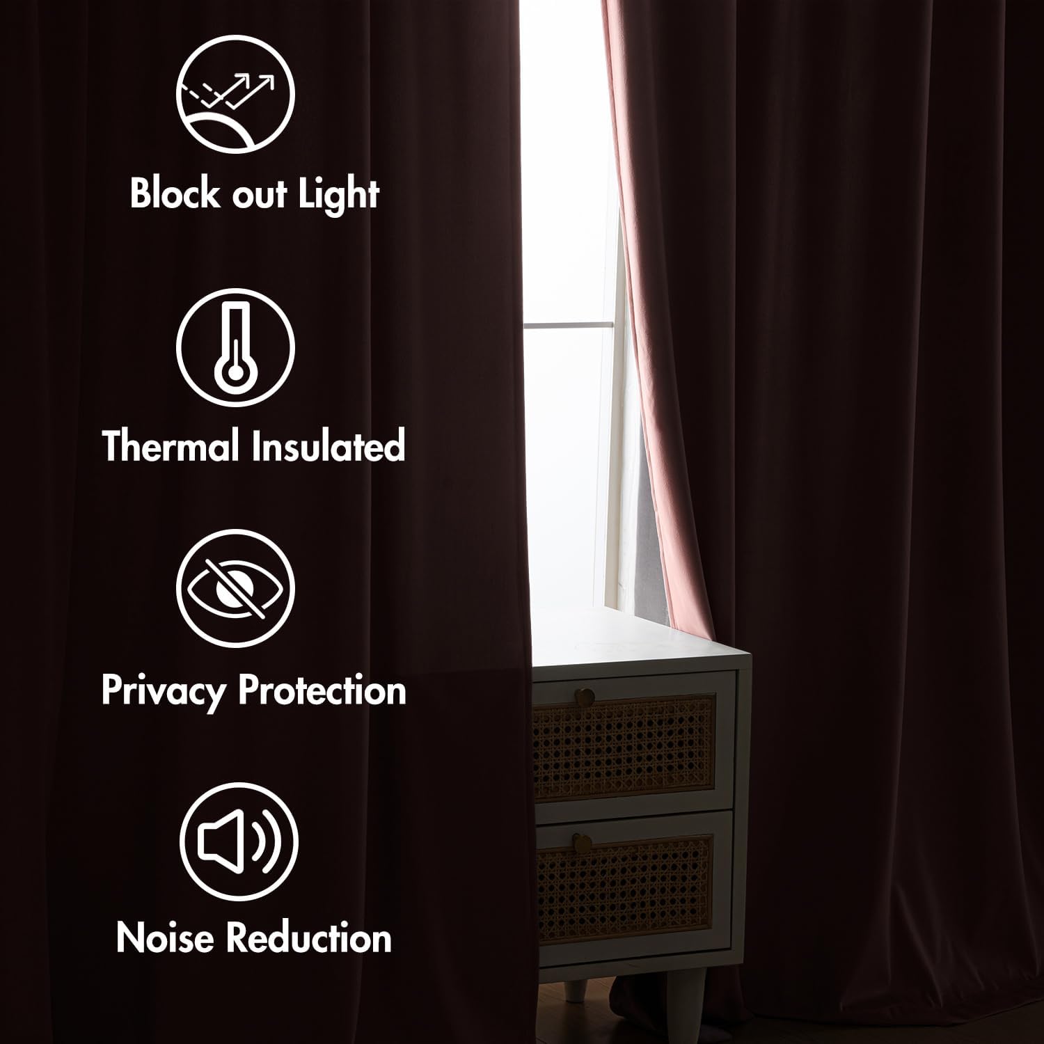 MIULEE Baby Pink Velvet Curtains 108 inches 2 Panels - Luxury Room Darkening Window Drapes for Bedroom Living Room Thermal Insulated Super Soft Blackout Extra Long, Back Tab Rod Pocket Pinch Pleated