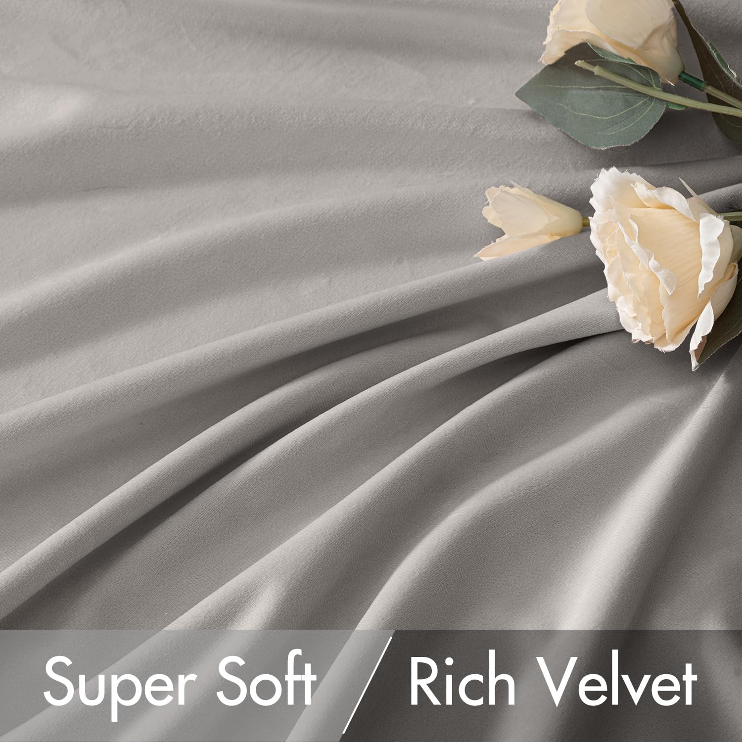 MIULEE Silver Gray Velvet Curtains 96 inches 2 Panels - Luxury Room Darkening Window Drapes for Bedroom Living Room Thermal Insulated Super Soft Blackout, Back Tab Rod Pocket Pinch Pleated, W52 x L96