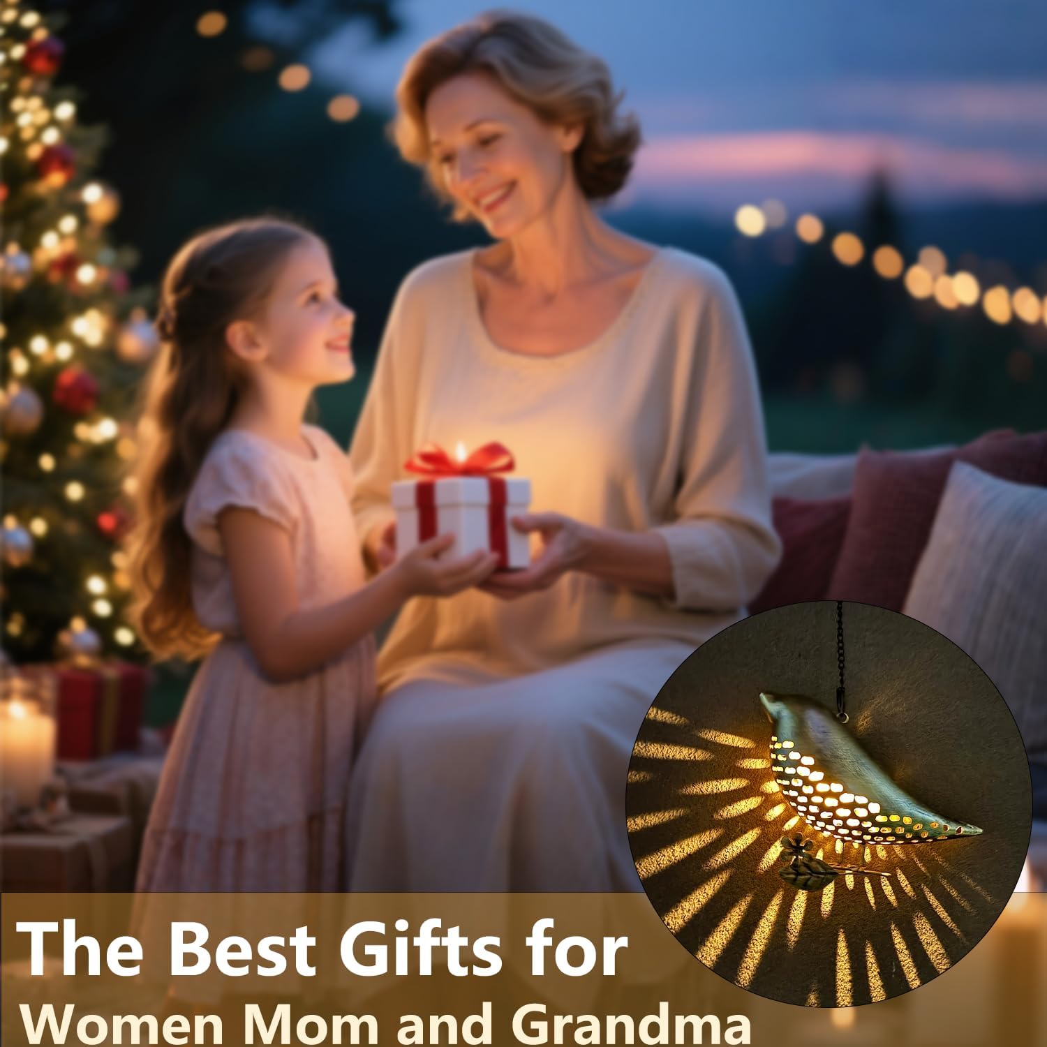 Solar Birds Lights Metal Outdoor Decor,Hanging Wall Decorations Outside Yard Art Garden,Waterproof Lanterns for Patio,Porch,Backyard,Fence,Gifts for Women,Mom