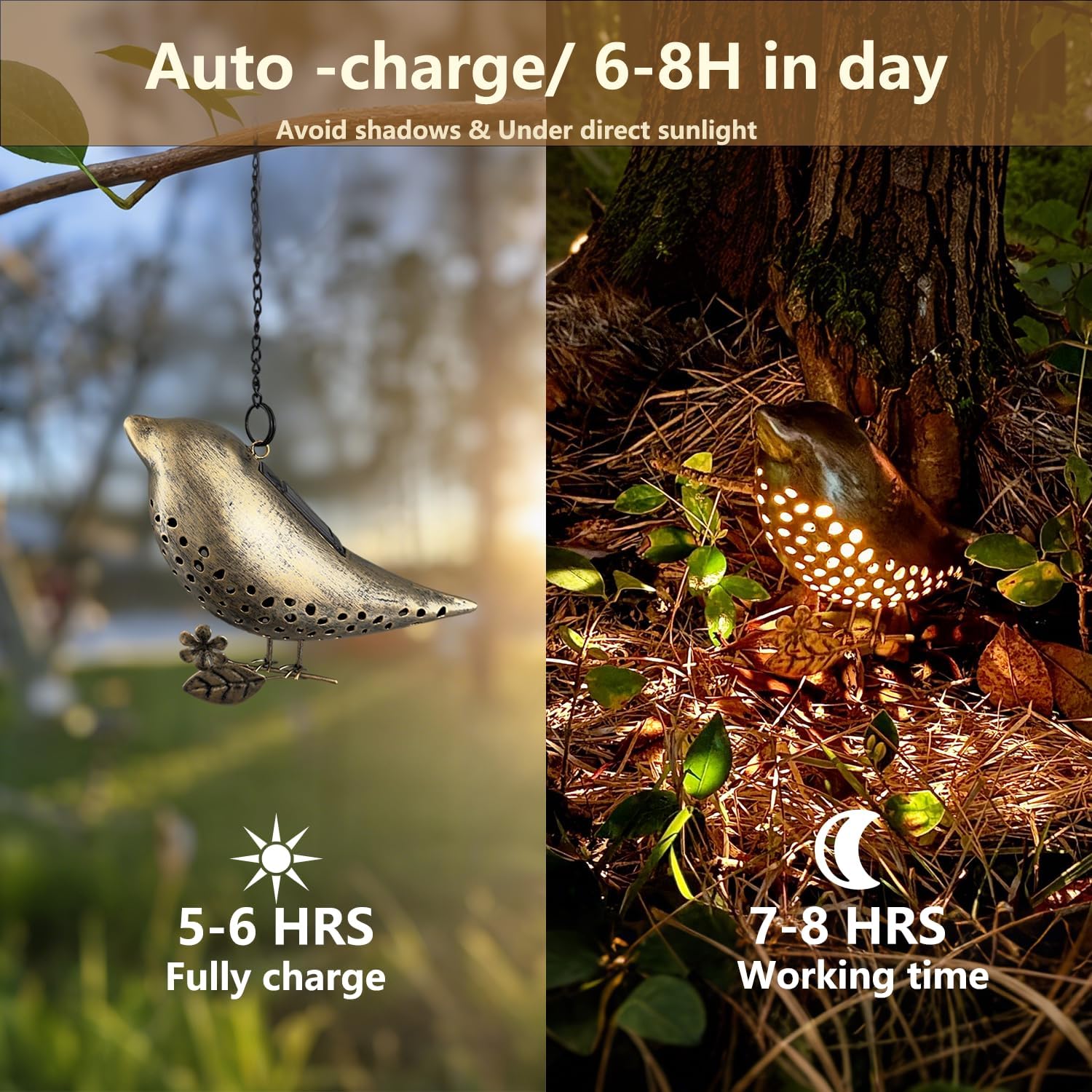 - Solar powered Bird Ornaments for Outdside Elegance These bird outdoor furniture elevate summer soirees,rooftop parties and poolside lounges.Ideal for sisters,granddaughters and garden bloggers,they shine during Easter,Mother’s Day, and Diwali,casting a gentle glow on garden arbors,pool decks, and pergola beams.Their warm finish and weatherproof build blend art with functionality,perfect for both daily decor and festive occasions.