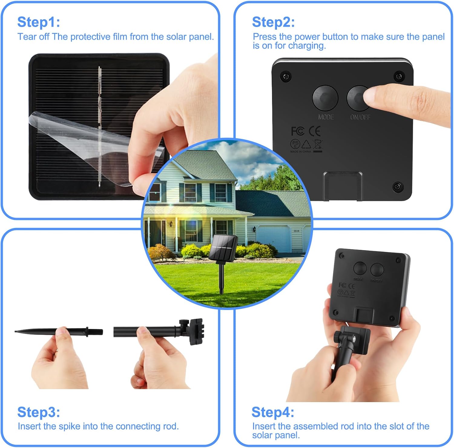 - 【Eight Romantic Lighting Modes】These solar string lights feature eight lighting modes, including steady on, combination, in waves, sequential, slow-glow, chasing, slow fade and twinkle. Different lighting settings produce different lighting atmosphere. So you could choose your preferred lighting mode to decorate your home in special festivals or brighten up the exterior of your home at night