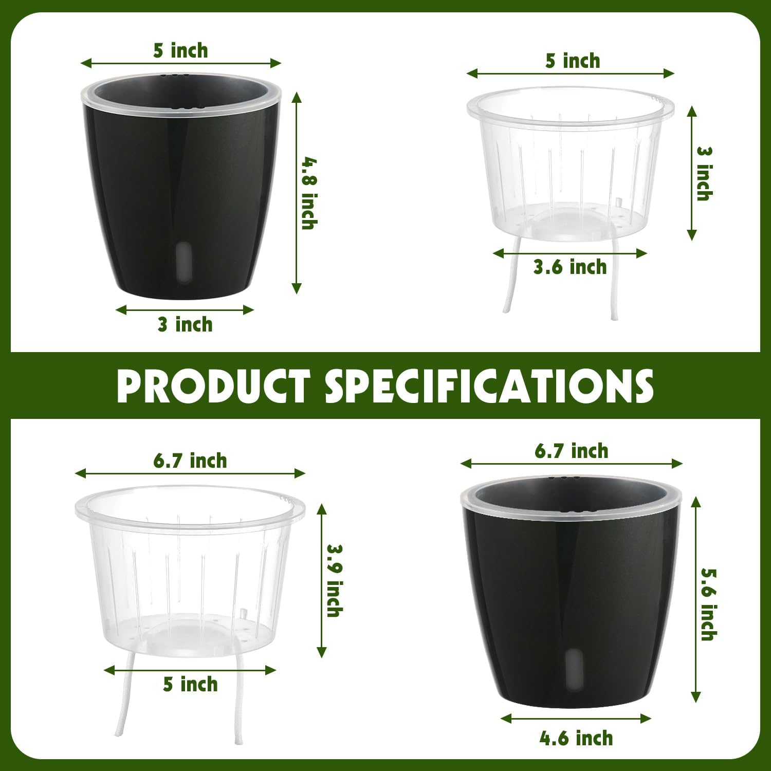 - Clear Wick Inner Pot with Drainage Holes: Each plant pot includes a transparent wick inner pot, allowing air and water circulation around the roots while making it easy to check plant growth. Ideal for orchids and other delicate plants that need extra root care!
