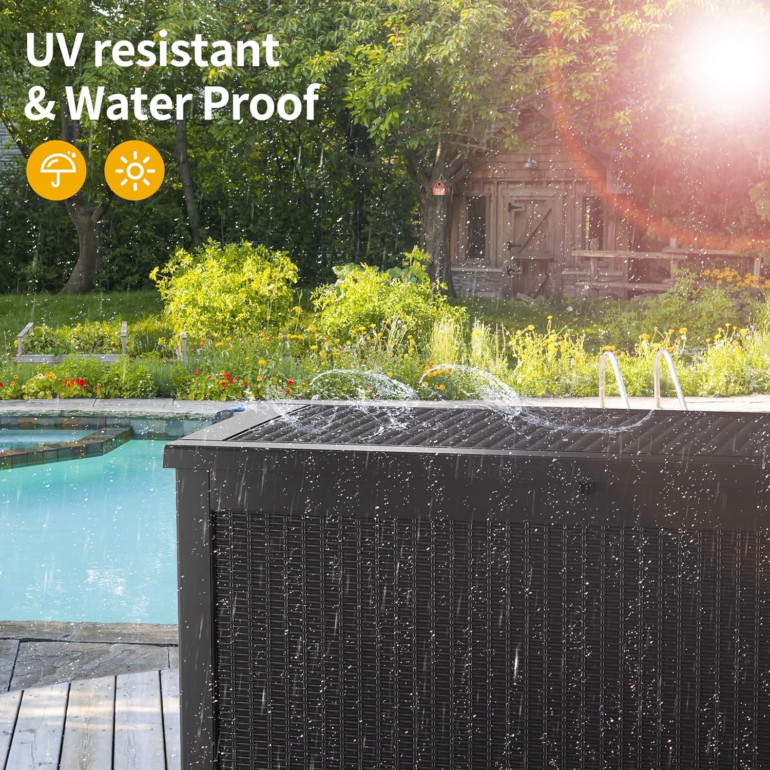 320 Gallon Resin Deck Box, Waterproof Outdoor Storage Bin for Patio Furniture, Pool Accessories, and Garden Tools, Lockable & UV-Resistant, Black