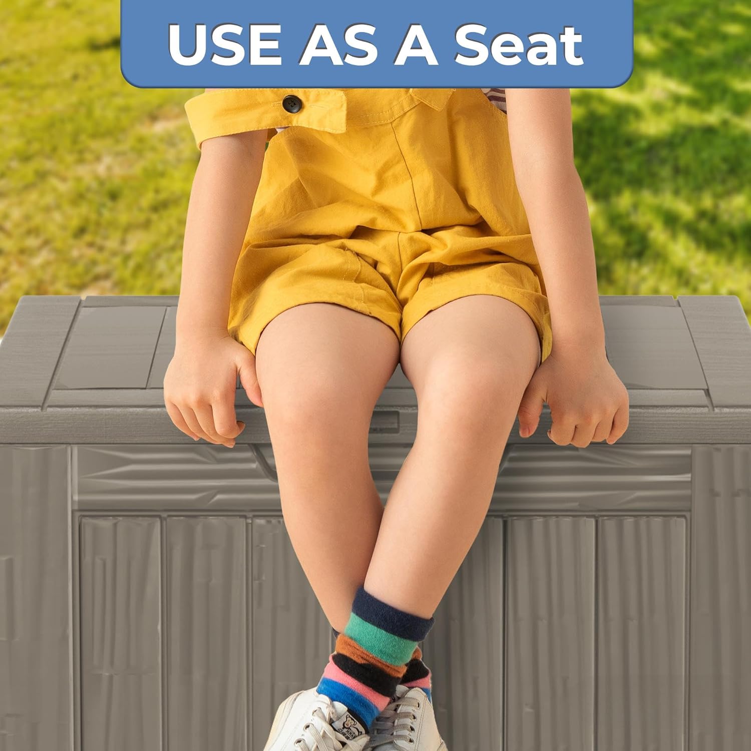 - Functional for Everyday Use. Features a reinforced lid and built-in handles for added convenience. The lockable design helps keep your items safe from weather and pets, making it A practical small outdoor bin.