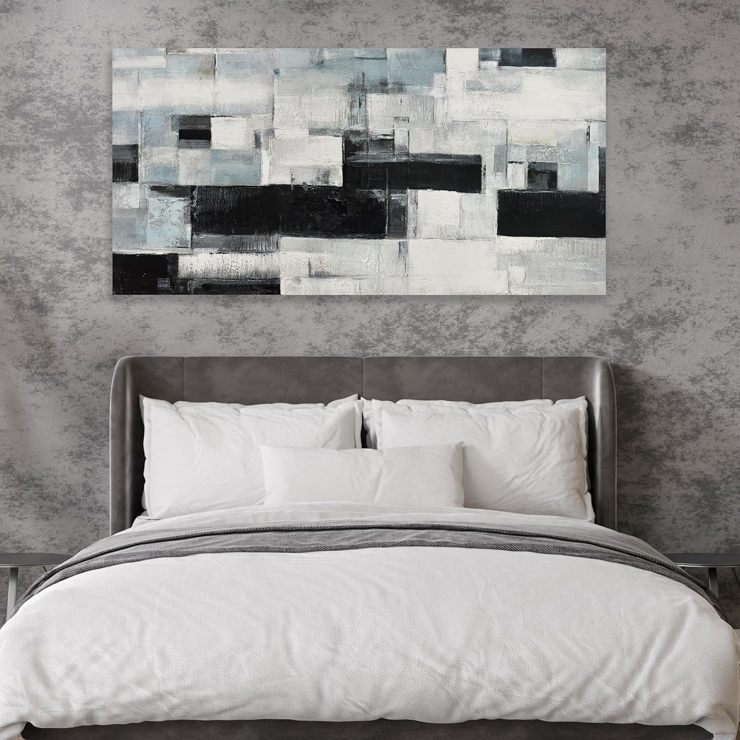 Glvzygy Abstract Wall Art Room Decor Black White and Gray Plaid Minimalism Picture Abstract Art Wall Decor Modern Abstract Wall Art Canvas for Living Room Bedroom Office 20"x40"