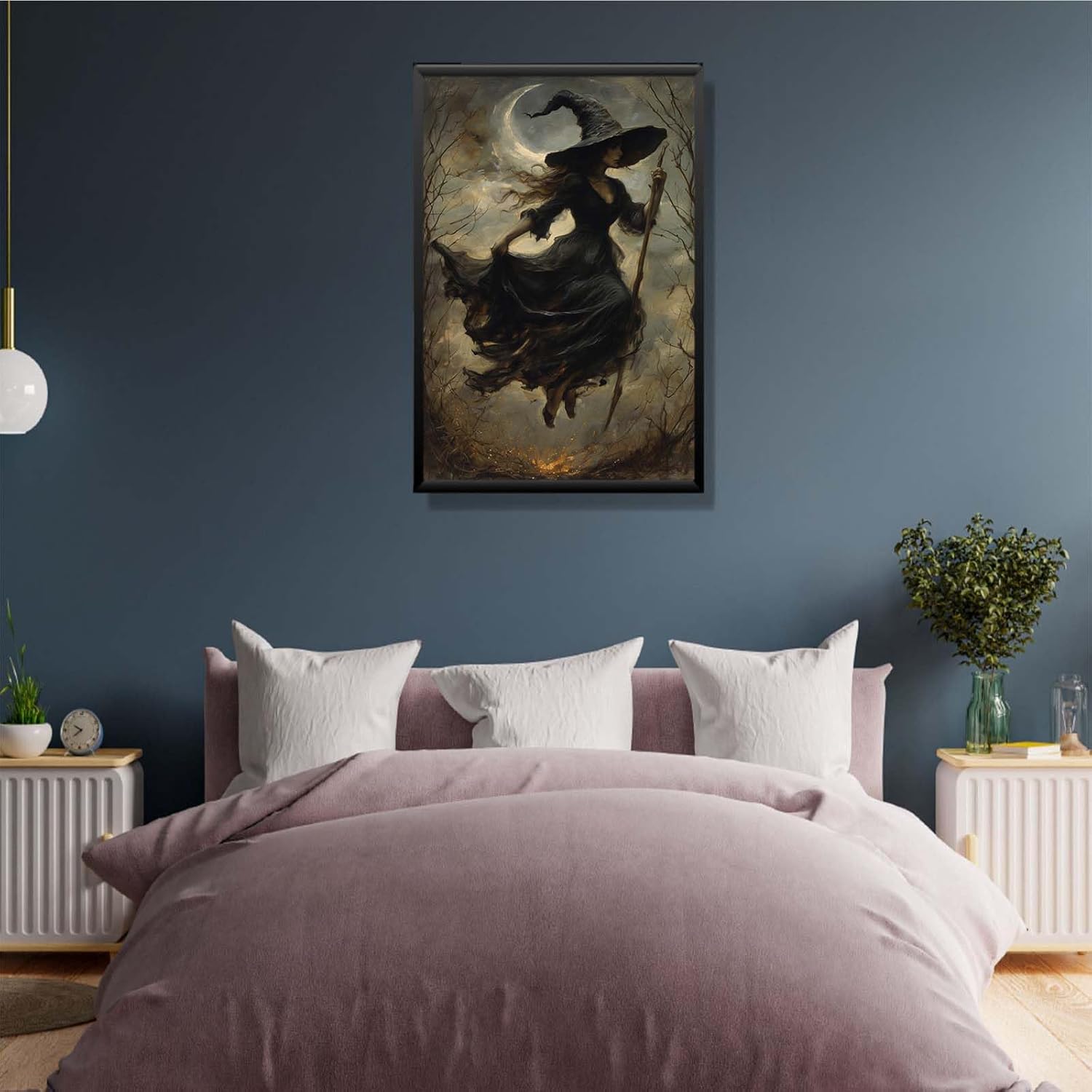 JFHCQJPK Witch in the Forest Halloween Print Wall Art Poster Witch Decor Vintage Print Dark College Wall Art Victorian Gothic Room Decor Canvas Wall Print24x36in Metal blackFramed