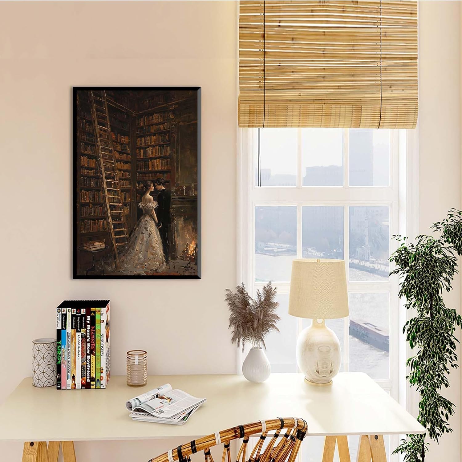 JFHCQJPK Gothic retro library scene decoration melancholy calm art college style wall aesthetic antique style home decoration suitable for bedroom living room8x12in Metal blackFramed