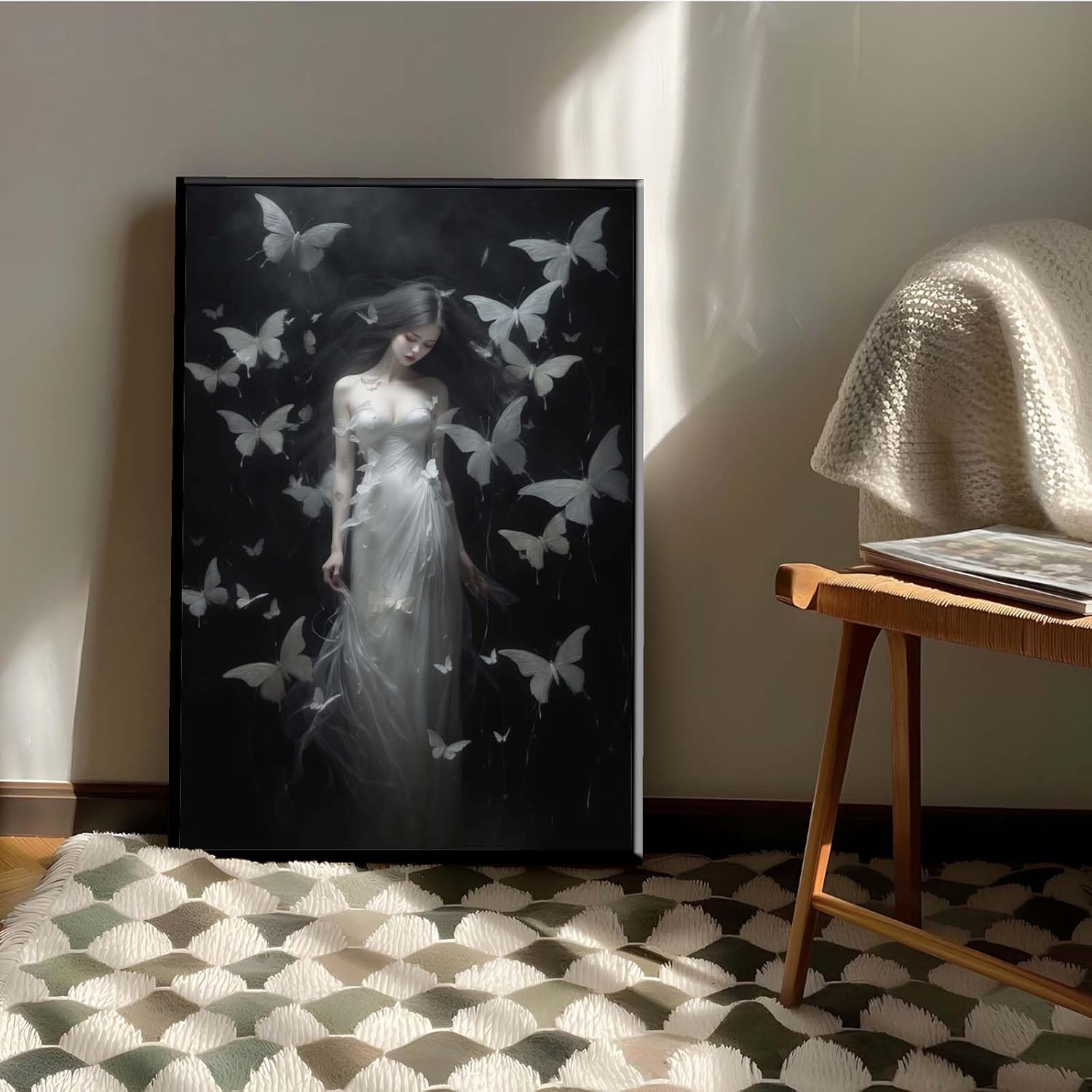 JFHCQJPK Vintage Gothic Feminine Canvas Wall Art Print Butterfly Poster Moody Female Wall Art Retro Artwork Dark College Decor for Home Bedroom24x36in Metal blackFramed