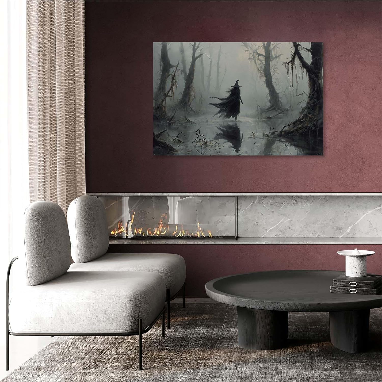 JFHCQJPK Vintage rustic swamp witch poster dark moody wall art gothic horror season halloween print for home decor retro dark moody painting12x16in Frameless