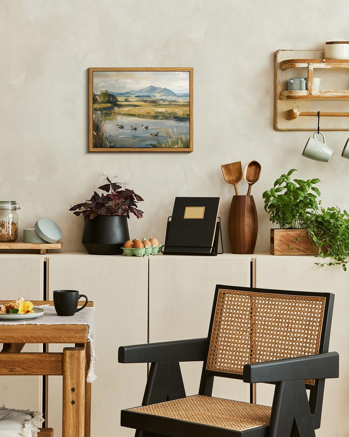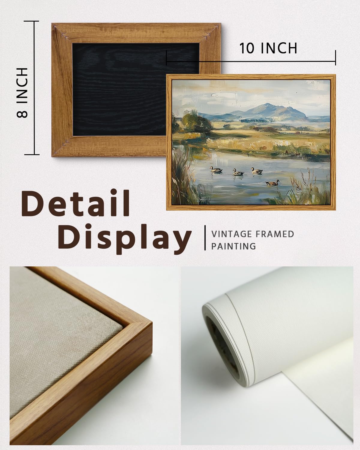 VIYYIEA Framed Wall Art for Living Room, Duck Pond Canvas Prints, Vintage Home Decor, Oil Painting Picture, Bathroom Wall Decor Gifts for Friends or Family -【Duck Pond】-(10L x 8W)