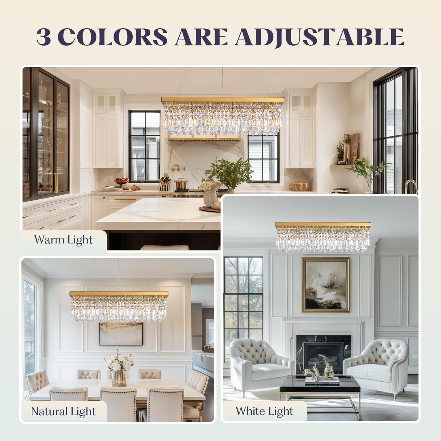 - 💡 【3-Color Lighting with Dimmable Option】Customize your ambiance with 3-color light options (2700K/4500K/6000K)—warm, neutral, or cool white. This modern crystal chandelier supports full dimming when used with dimmable E12 bulbs and a compatible dimmer switch (bulbs and switch not included). Create the right mood for every moment.