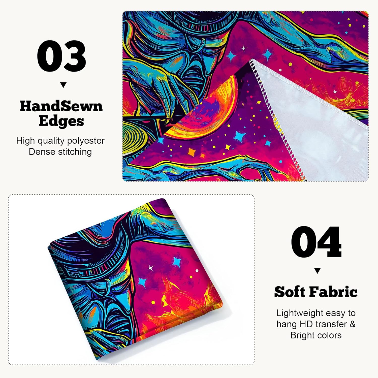 - Versatile Tapestry - With its durable materials and unique design, this blacklight tapestry can serve as a wall hanging tapestry, indie room tapestry, curtain tapestry, dorm room tapestry, ceiling tapestry, bedroom tapestry, glow-in-the-dark artwork or even a picnic blanket.